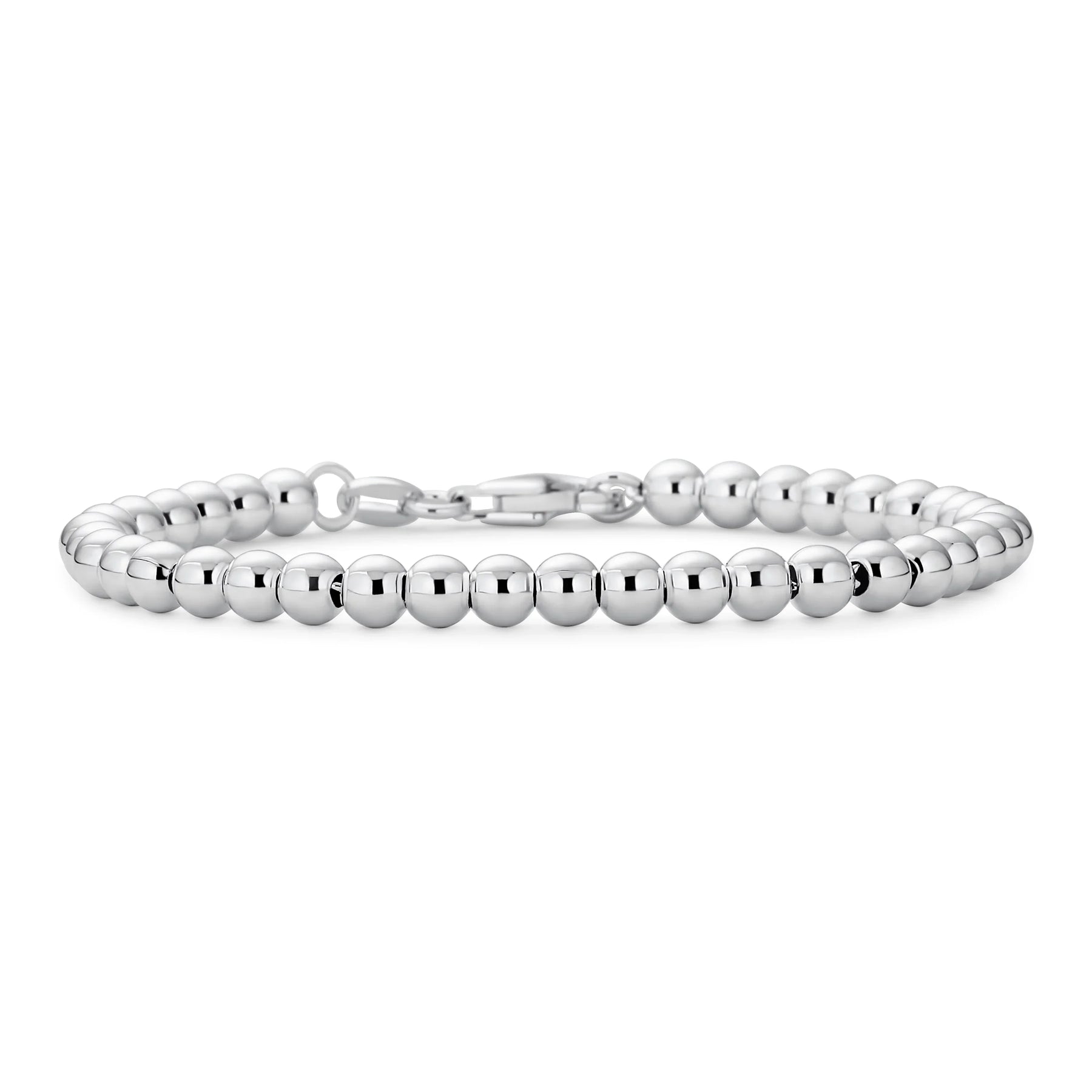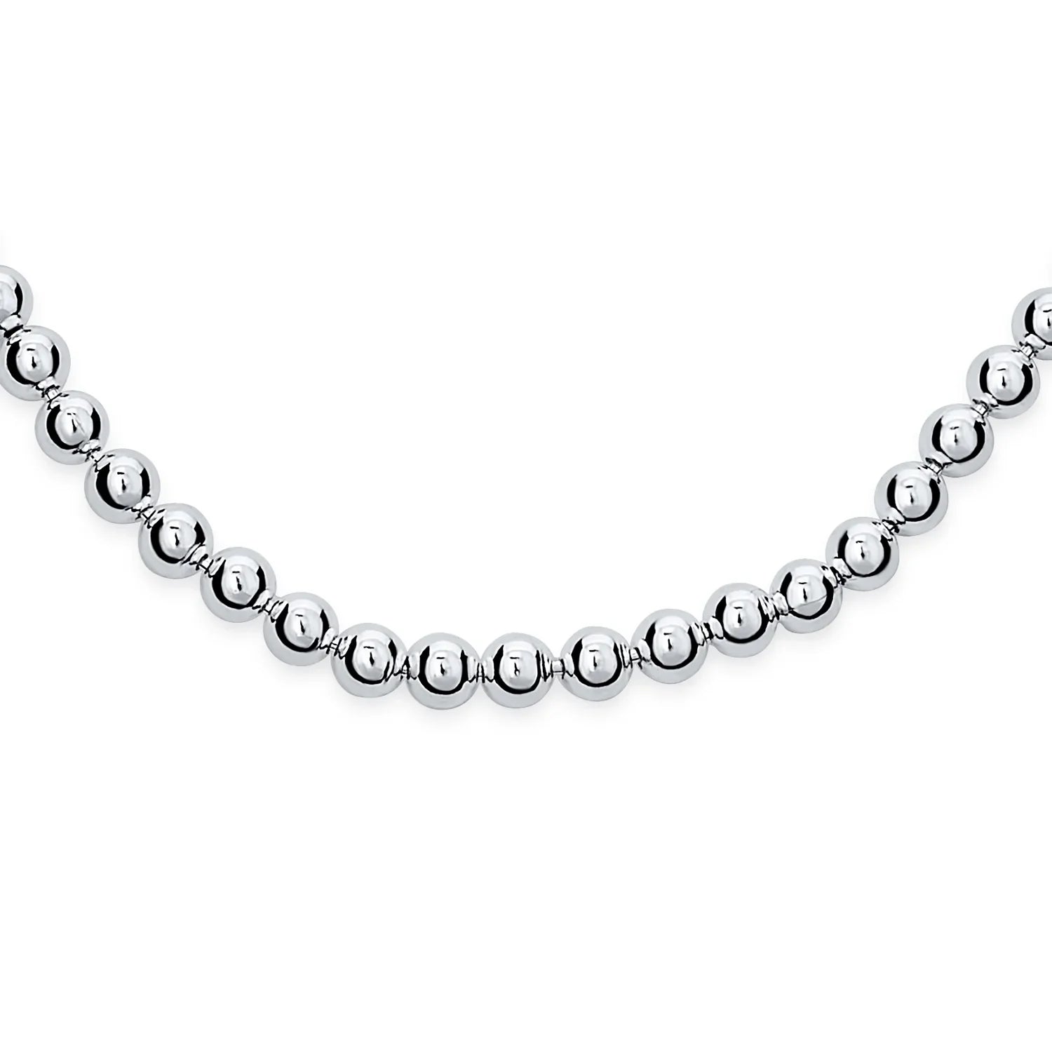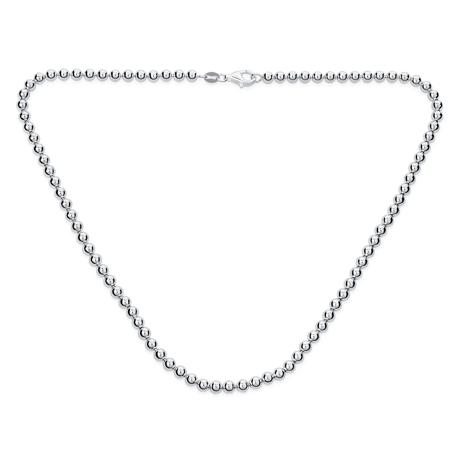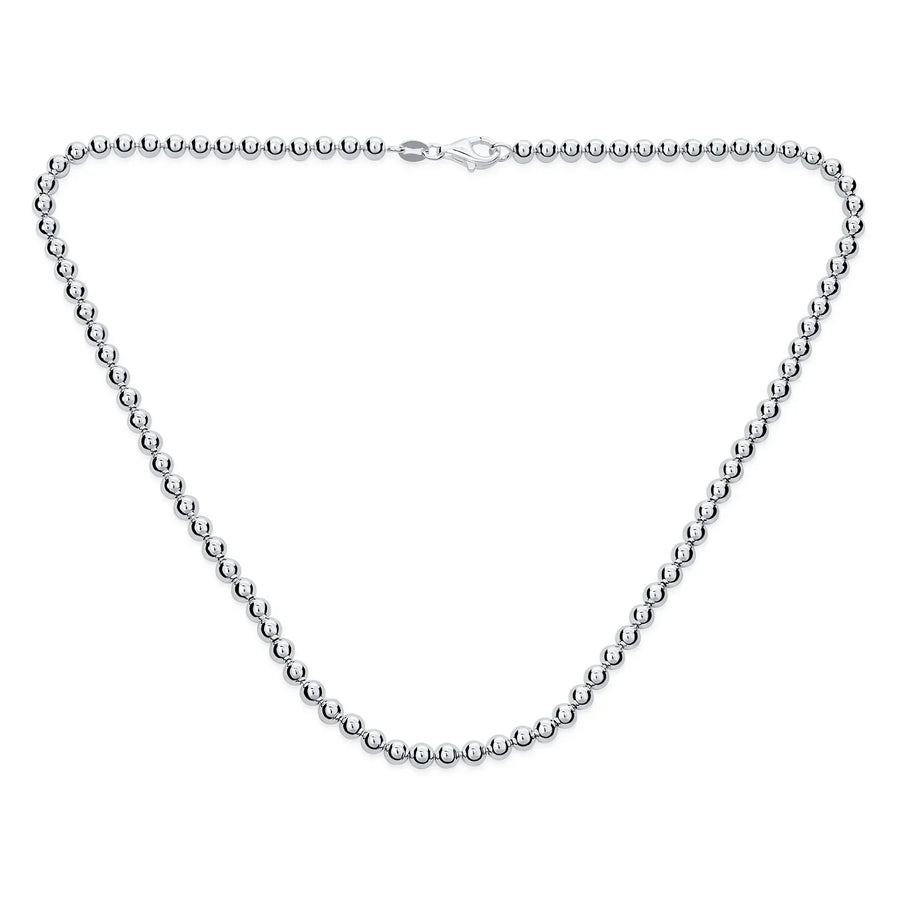 - Experience the perfect blend of classic pearl look in sterling silver for a modern twist. Featuring a strand of 4mm sterling silver balls, this necklace can be worn alone for a timeless look. The lobster claw style closure ensures a secure fit, while the unbeatable shine adds a touch of luxury to any outfit. Indulge in a wealthy look and a sense of opulence without breaking the bank with this entry to luxury necklace.
