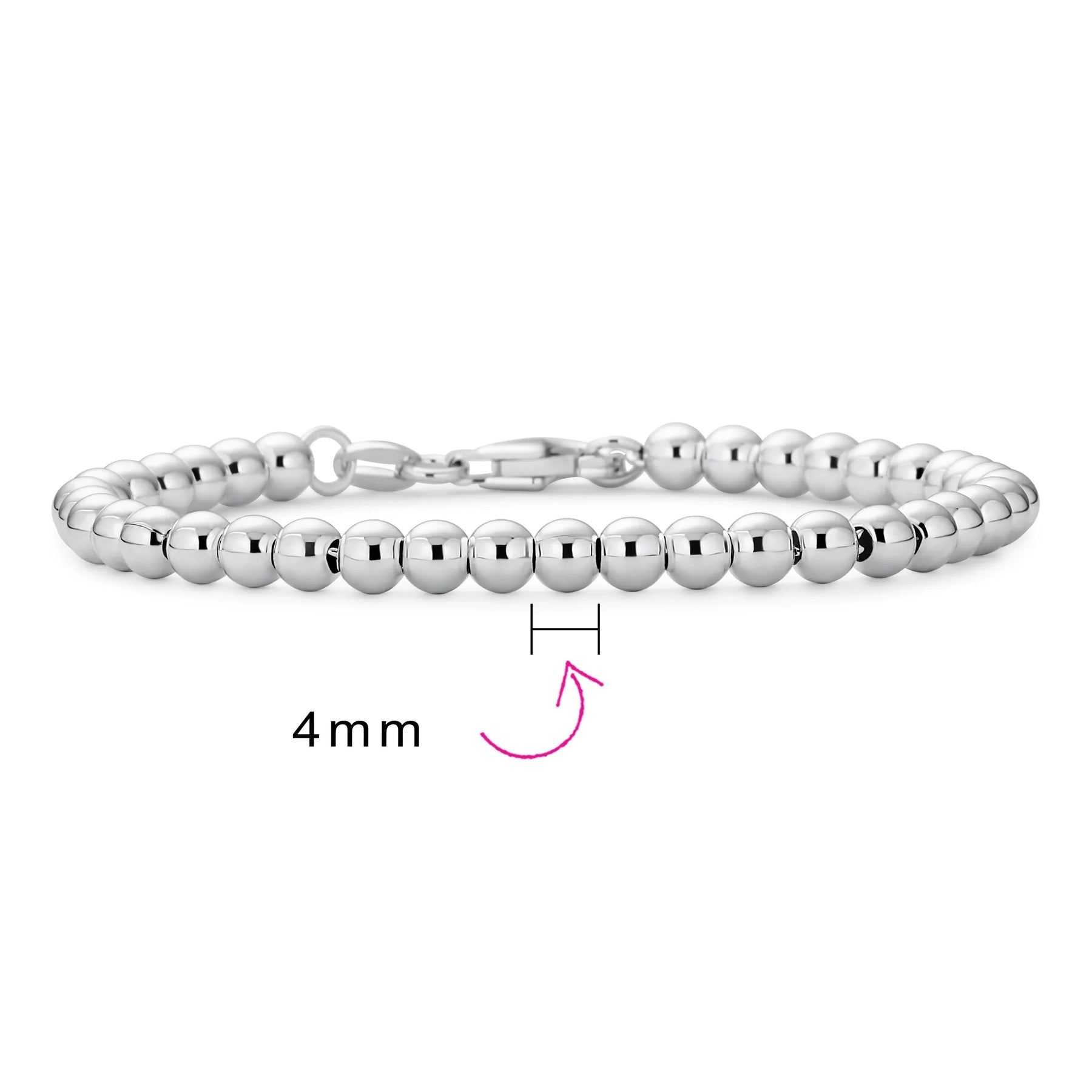 - If you need an extra bit of shine around your neck, this .925 Sterling Silver necklace is the perfect choice. Made from high shine beads, our silver jewelry has a classic look that is sure to make it a staple in your jewelry collection. Each bead is 4MM wide with a lobster clasp that makes sure this beaded necklace stays on all night. Wear it to office with your sleekest suit. Or, wear it on your big day as bridal jewelry to keep you and your white dress glowing.