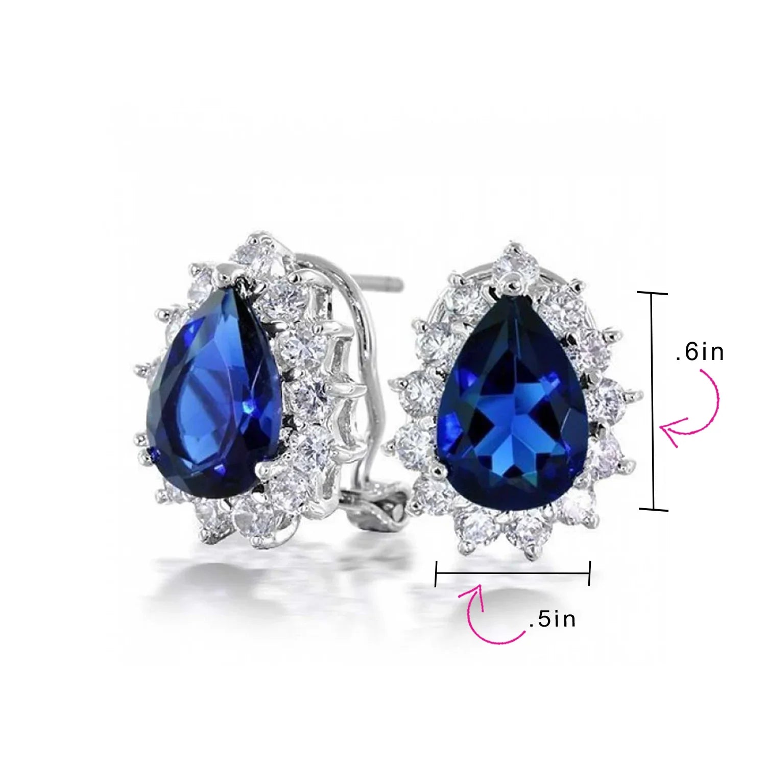 - STUNNING DESIGN - These enchanting stud earrings feature a 2.25 CT simulated sapphire surrounded by dazzling blue teardrop CZ stones and sparkling accents. Perfect for feeling like a princess and a stunning September birthday gift option.