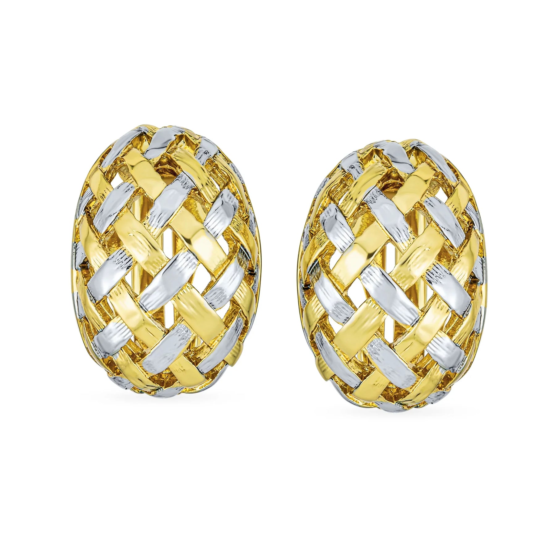 • Add casual traditional glam to your look, with these finely woven metal. Lustrous two tone, delightfully versatile earrings, perfect for day or eveningwear creates a dynamic, dimensional look that will beautifully complement both silver and gold tone metals. Lead and nickel free.
