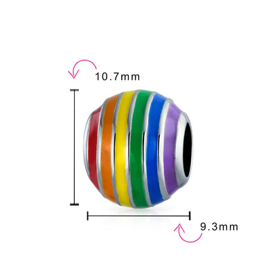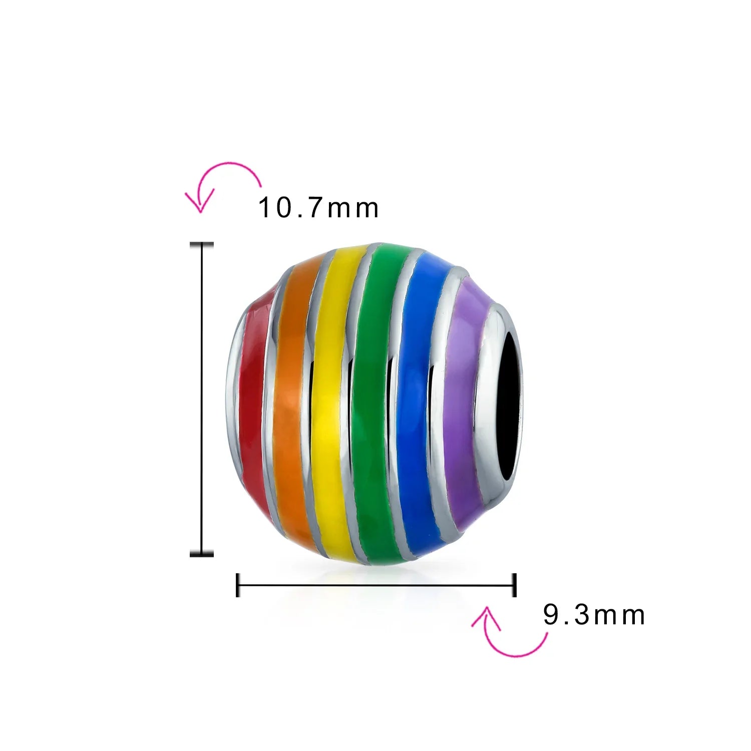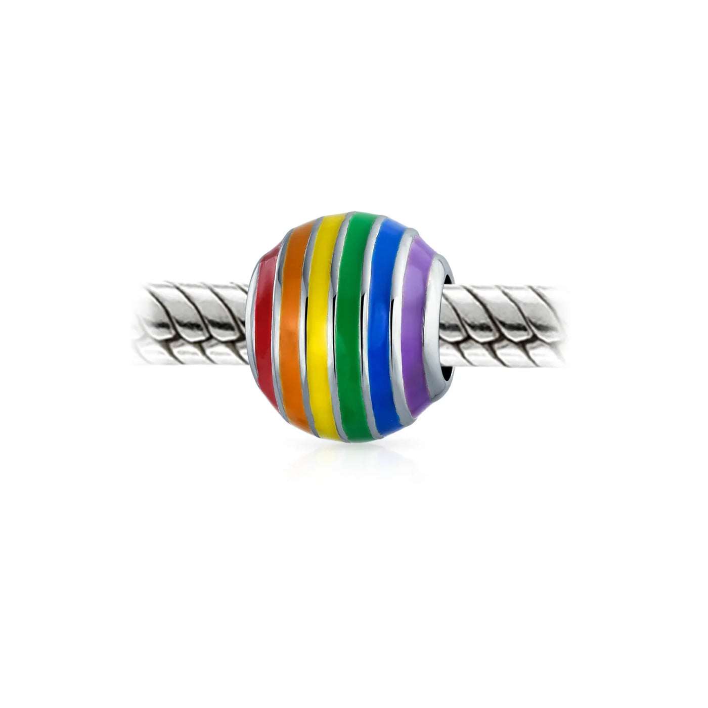 - Capture the essence of love and acceptance with this enamel sterling silver bead charm, adorned with a ball motif and vibrant rainbow colors. This LGBTQ Symbol charm inspires love and acceptance, making it a beautiful and sentimental gift to add to your bead collection.