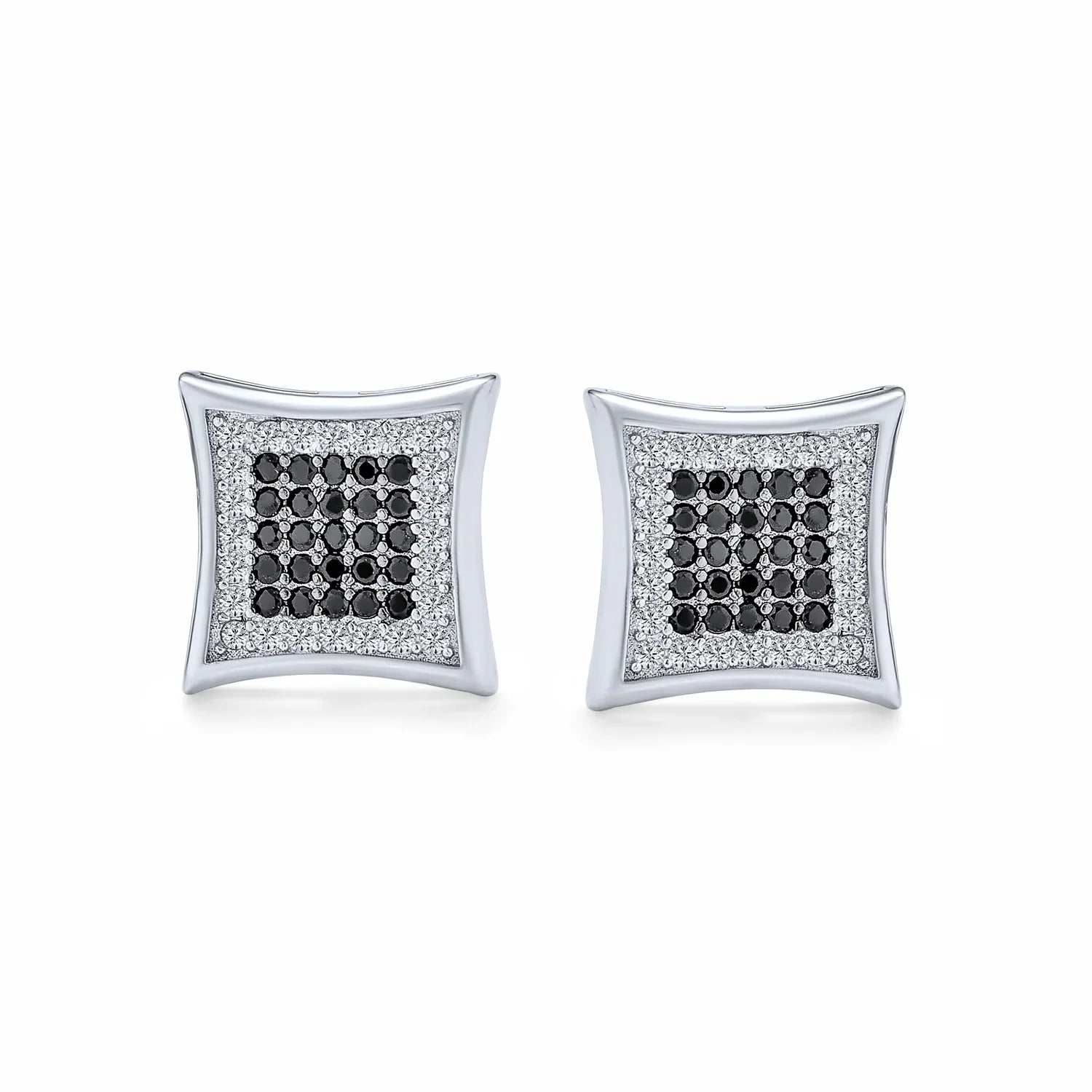 - Enhance your style with our black and white micro pave CZ stud earrings. These chic geometric kite studs are timeless. Add subtle bling to any outfit without looking gaudy. Perfect addition to your jewelry collection. Secure screw back clasp ensures they stay in place. Lightweight and comfortable for all-day wear. Ideal for men, these studs look great solo or paired. Order a pair for yourself and a friend today!