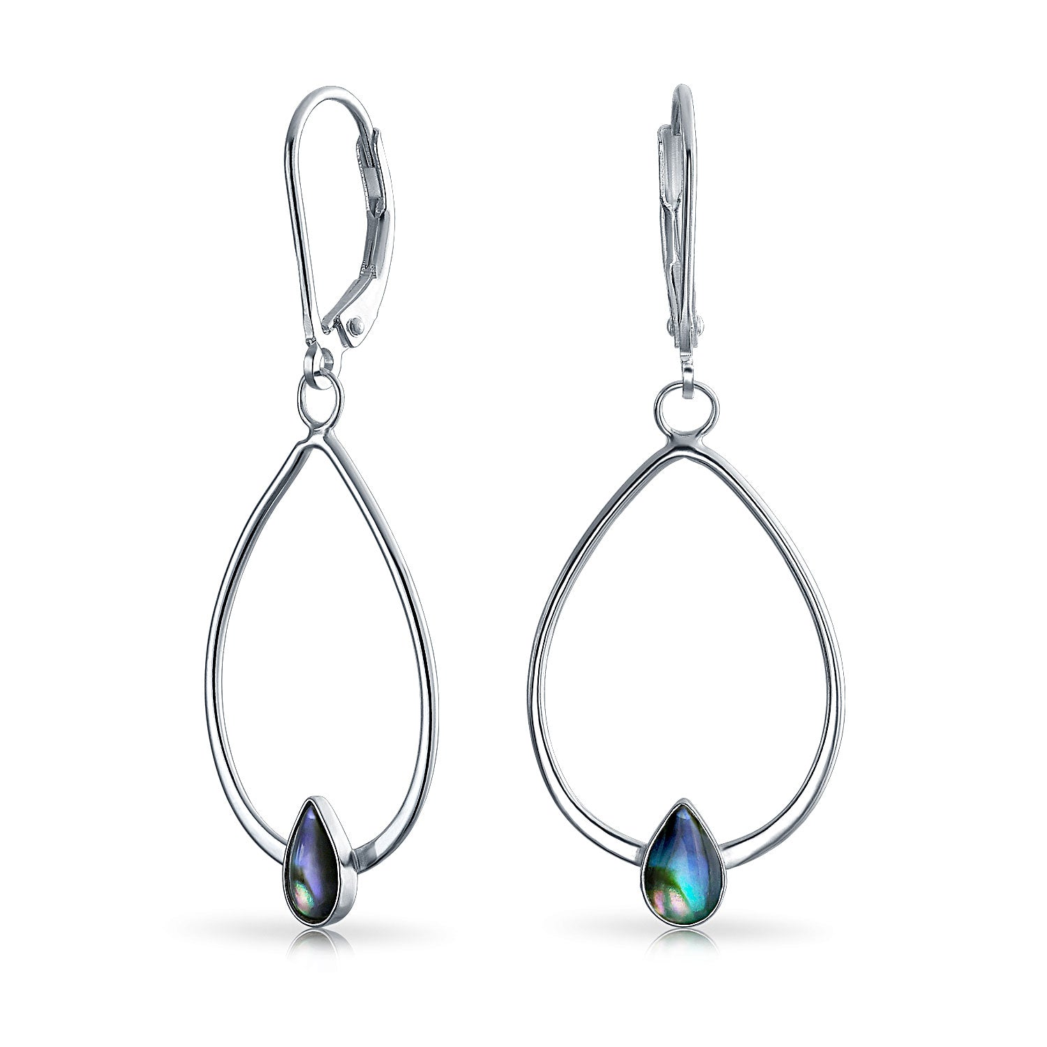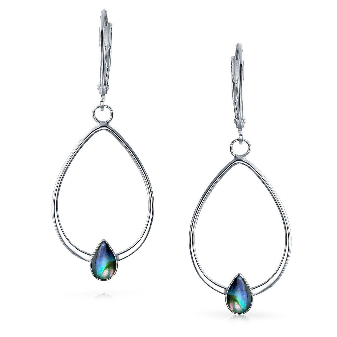 - For a modern feel with a dash of color, choose these beautiful sterling silver teardrop dangle earrings. The .925 sterling silver teardrop shaped hoop is highlighted with a natural abalone shell at the center. These lever back teardrop dangle earrings will give your look an airy, fresh feel exuding elegance.