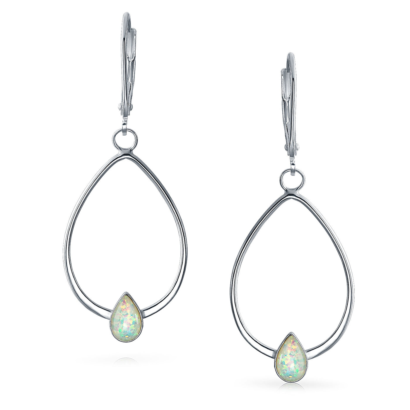 - Enhance your style with these elegant, featherweight teardrop earrings, showcasing a delicate synthetic white opal at the center of their graceful design. Crafted from .925 sterling silver, these leverback earrings are an ideal gift for any occasion.