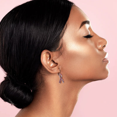 - Show your support for an significant cause and add feminine flair to your style with these fetching, alloy drop earrings. These brilliant, Breast Cancer awareness earrings are accented by the notable pink ribbon motif, adorned with pink pave crystals.