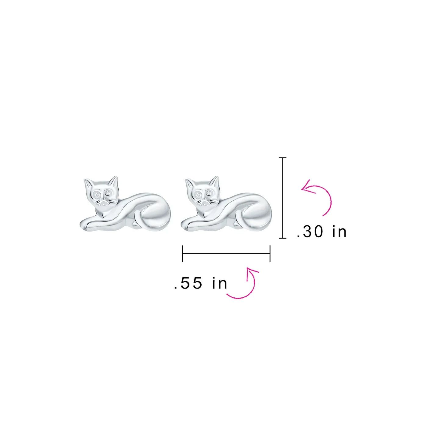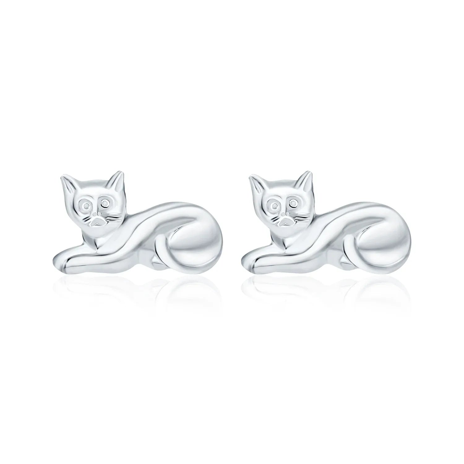 • Adorn your ears with our sterling silver sitting cat studs, the perfect cat lover's accessory. Weighing less than 1 gram, these 925 sterling silver earrings are comfortable for all-day wear. Ideal for yourself or as a gift, these affordable cat studs are sure to delight. Make a fun fashion statement with our pretty kitty cat jewelry, perfect for all ages. Charm cat lovers everywhere with these darling silver cat earrings, a sensational addition to any animal jewelry collection. Explore our site for more fun animal jewelry and start your collection today.