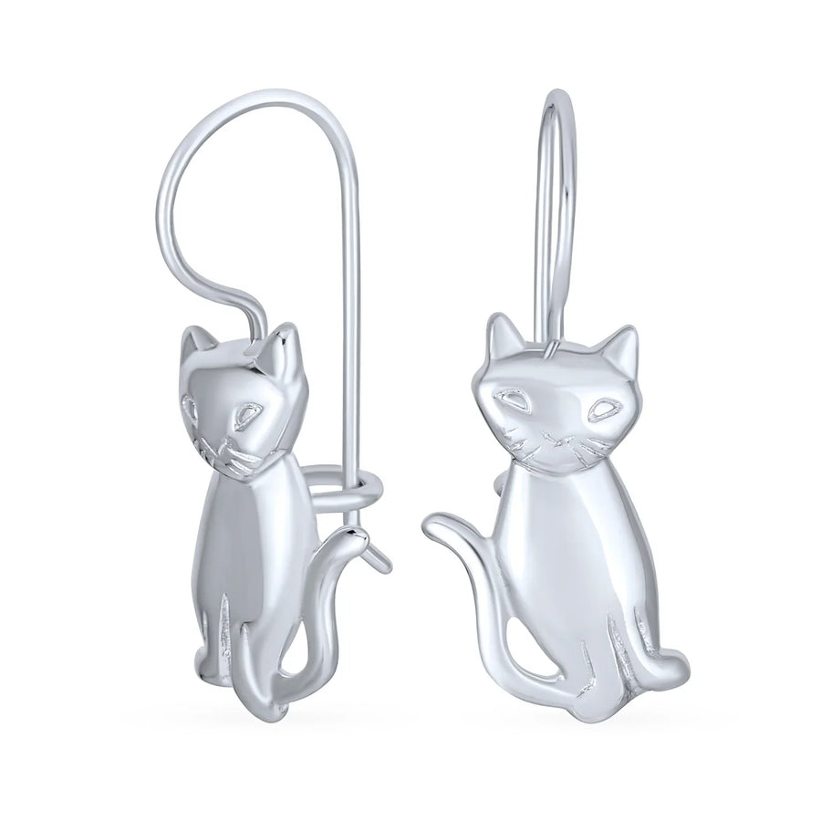 - Your cat brings you joy, so why not show it off? These adorable cat earrings are perfect for any feline lover. Intricately carved from .925 sterling silver, animal jewelry has never looked this good. The fishhook back finding with a notch ensures extra security. Weighing less than 3 grams, they're light enough for all-day wear. Delight yourself or a fellow cat lover with these charming earrings. Get your pair of these cute cat earrings today!