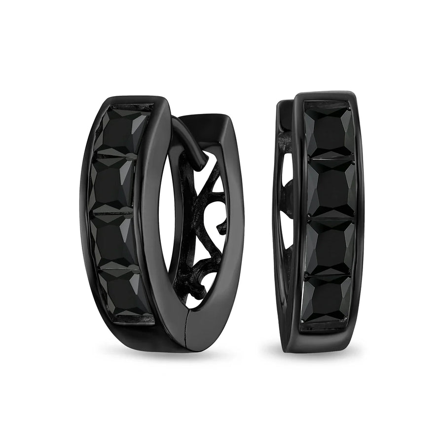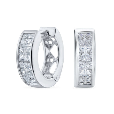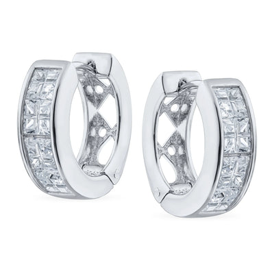 - Fashionistas know that huggie hoop earrings are hot. Our .925 sterling silver checkerboard cut cubic zirconia huggie hoop earrings are subtly sophisticated. Exquisite for a bridal party or sensational for a black tie event, these luscious cz stone huggie earrings will quietly steal the show every time. Featuring invisible cut s, our unisex earrings fit comfortably and snug on the earlobe. If you do not have a pair yet, our sterling silver hoops will make you feel like the center of attention.