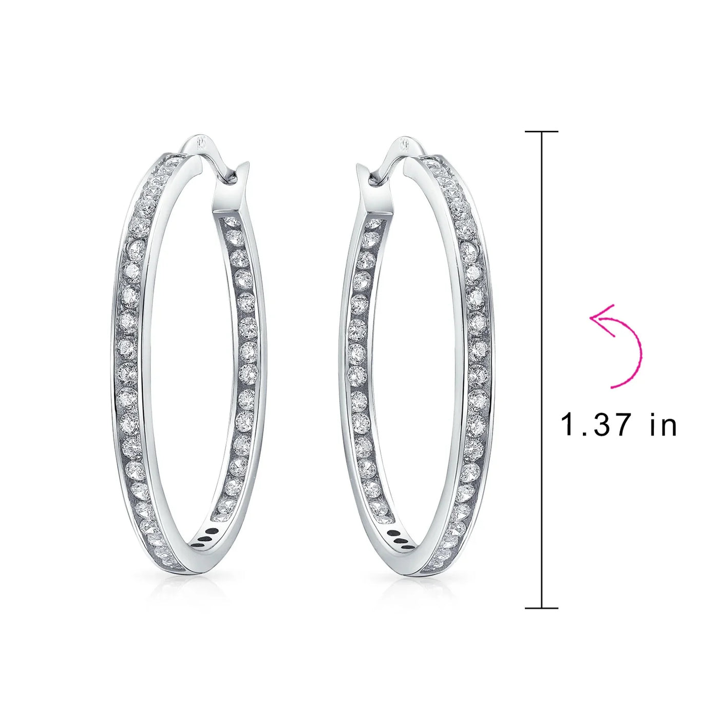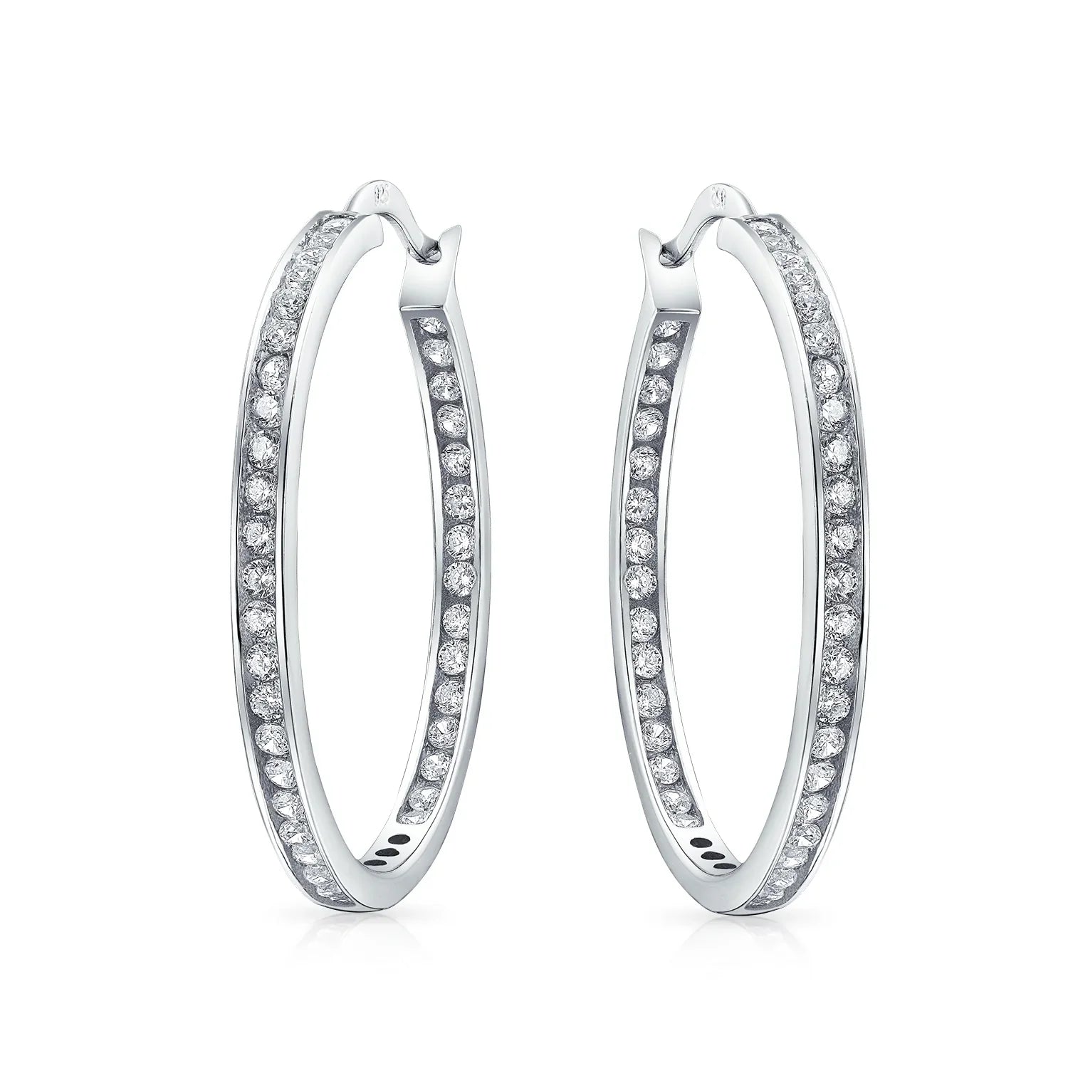 CZ Hoop Earrings Round Solitaire Channel Set Sterling Silver Statement Hoops