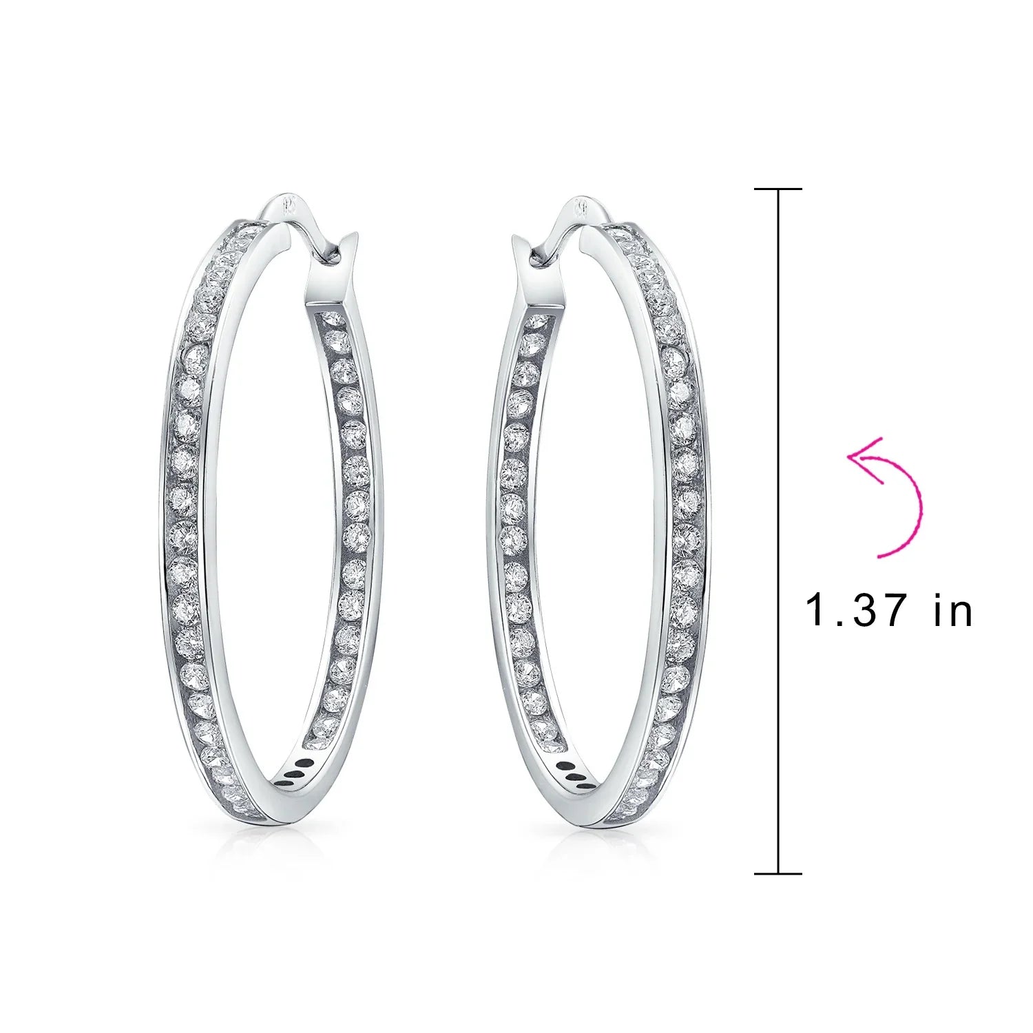 CZ Hoop Earrings Round Solitaire Channel Set Sterling Silver Statement Hoops - Bling Jewelry