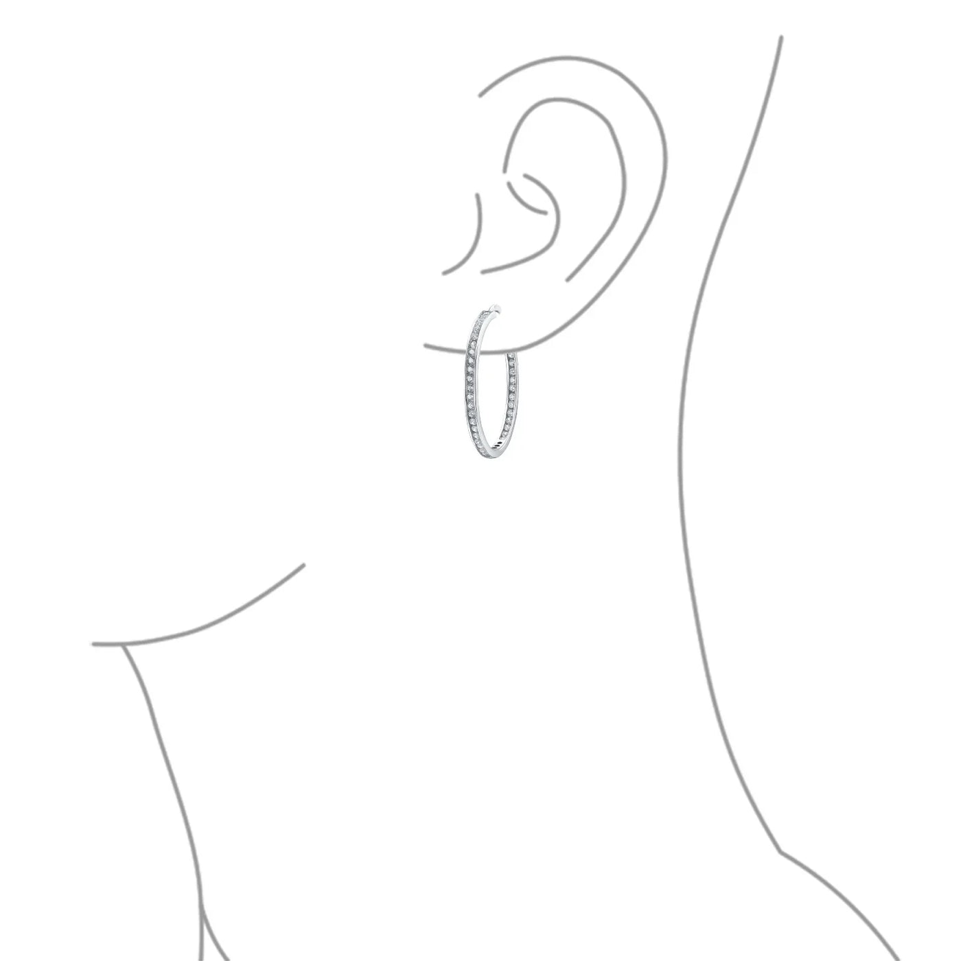• Experience luxurious elegance with these sterling silver hoop earrings, featuring channel-set pave CZ stones and a captivating inside-out design for radiant shimmer from every angle.