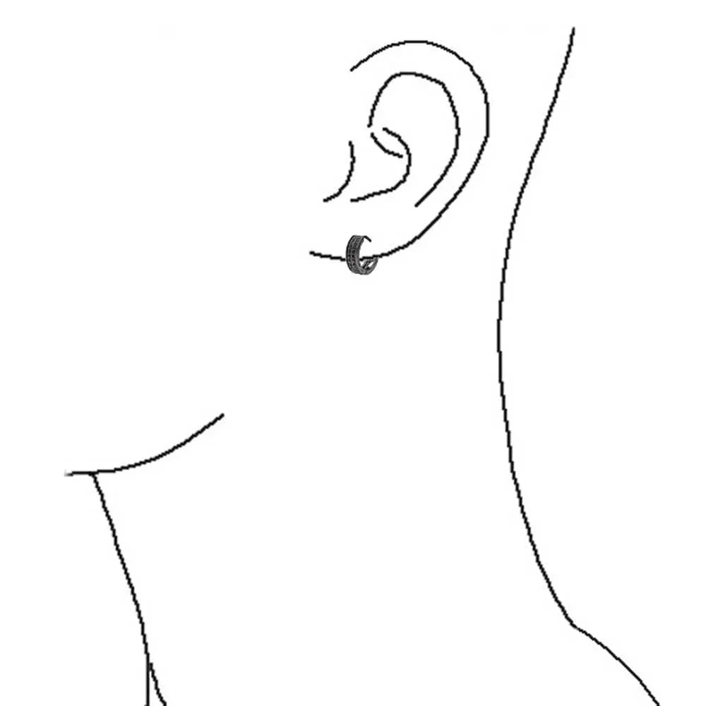 - These lustrously handsome mens huggie hoop earrings will add stylish elegance to any ensemble of his. Accented by two rows of radiant, micro pave, simulated onyx czs. Dashing July birthday option.