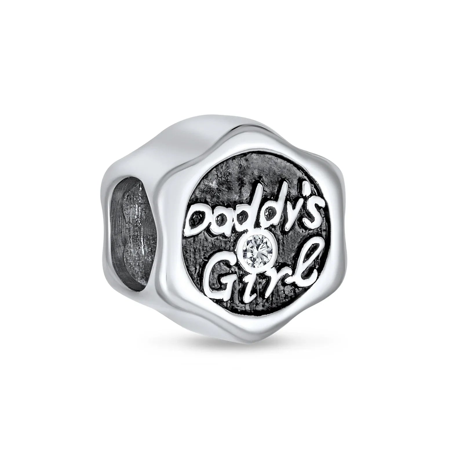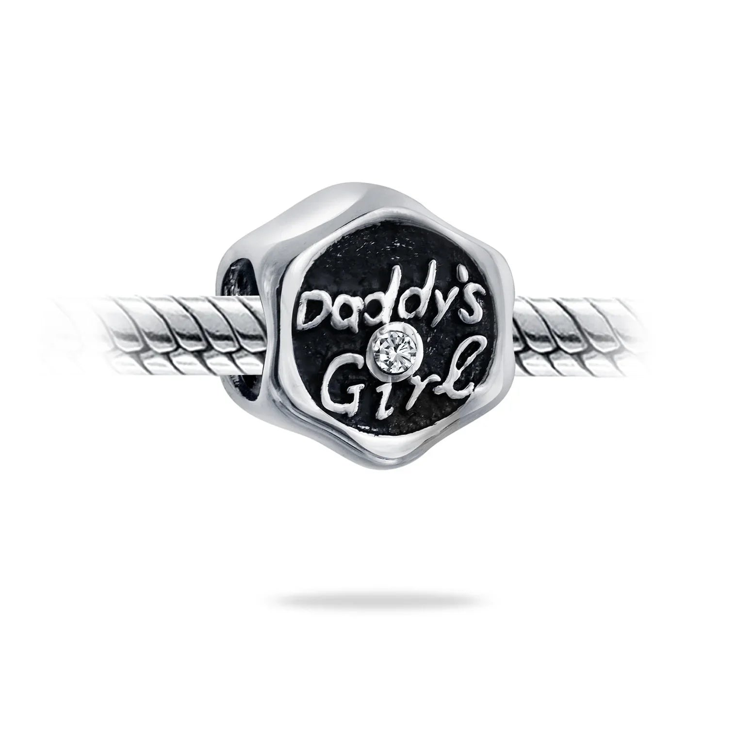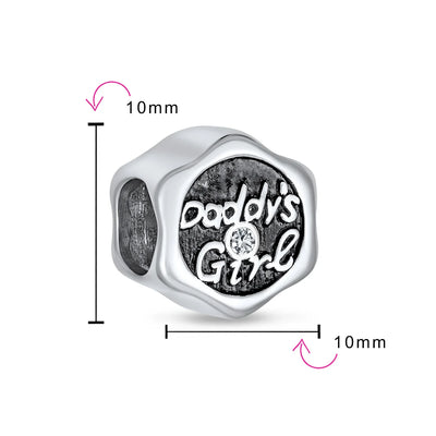 Father's Love CZ Daddy's Girl Charm Bead for Daughter Silver for Bracelet