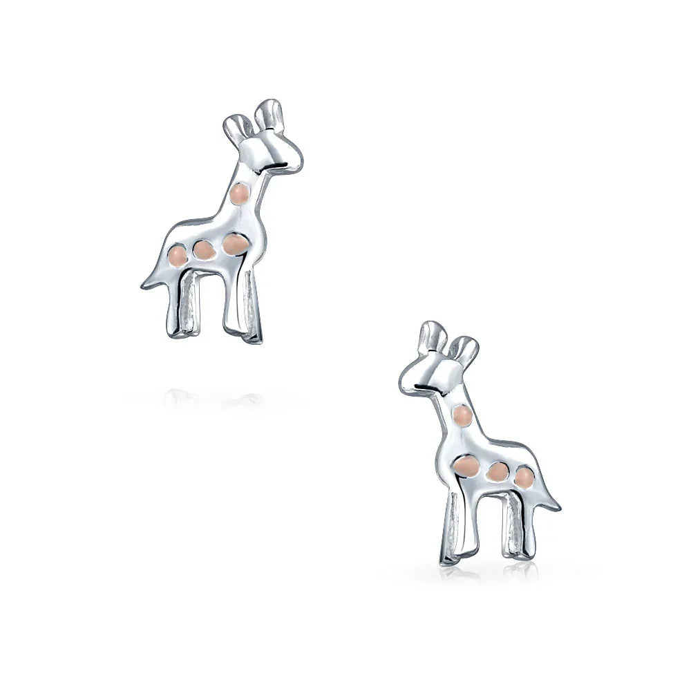 - Shopping for an animal lover? Our pink enamel giraffe earrings are the perfect cute gift. Whimsical and fun, these sterling silver giraffe studs feature charming pink enamel spots. Ideal for giraffe enthusiasts, these earrings showcase her love for animals. Perfect for zoo trips or playdates, they highlight her chic style. These adorable giraffe studs are a wonderful wardrobe addition. New earrings help her unique personality shine. Secure friction butterfly backs keep them in place during fun activities. Sterling silver ensures they won't irritate her skin. Rhodium plating keeps them shiny and tarnish-resistant for years.