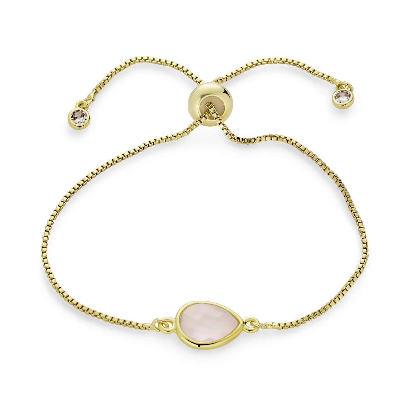 Delicate Rose Quartz Jewelry Set Earrings Bracelet & Pendant in 18K Gold Plated - Bling Jewelry