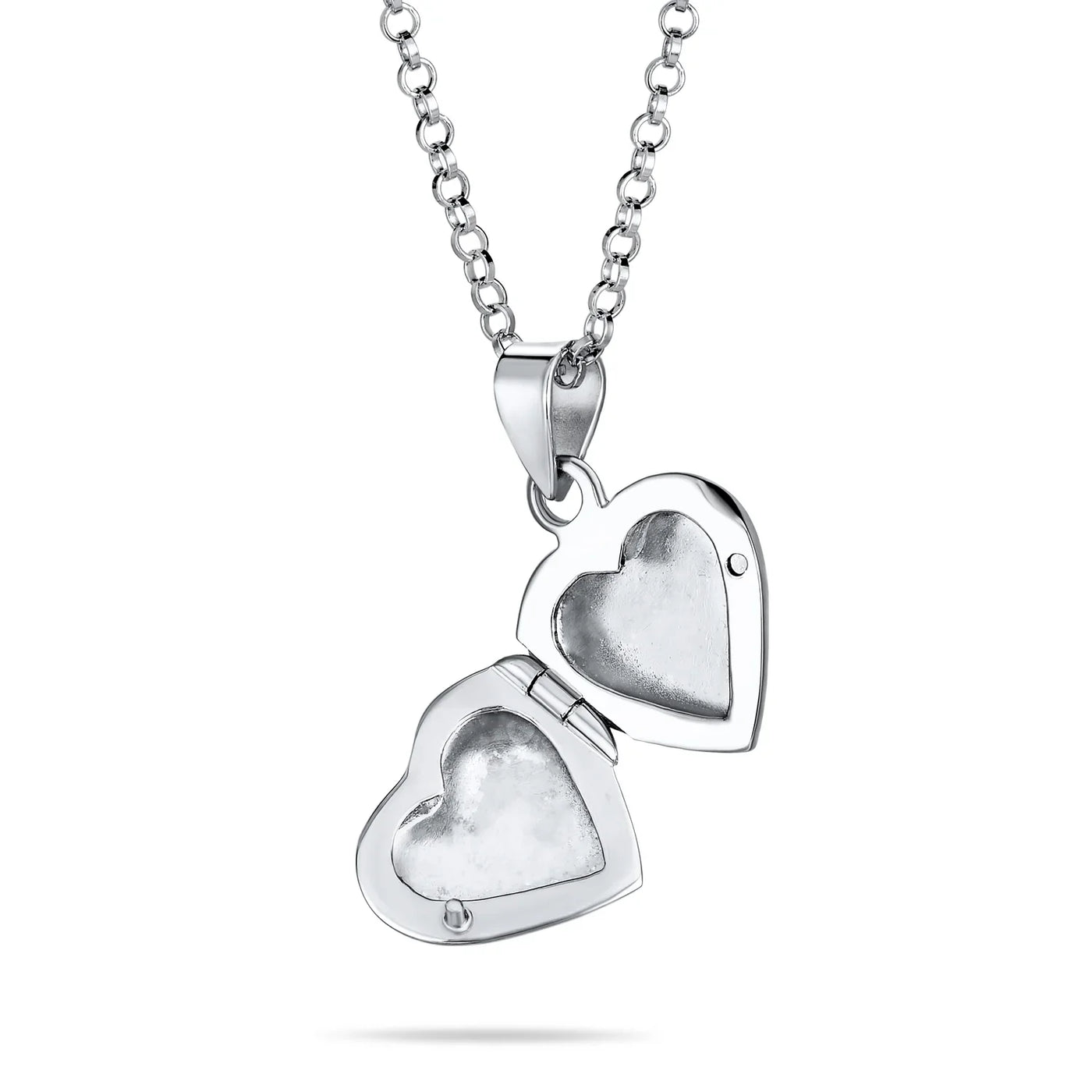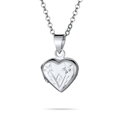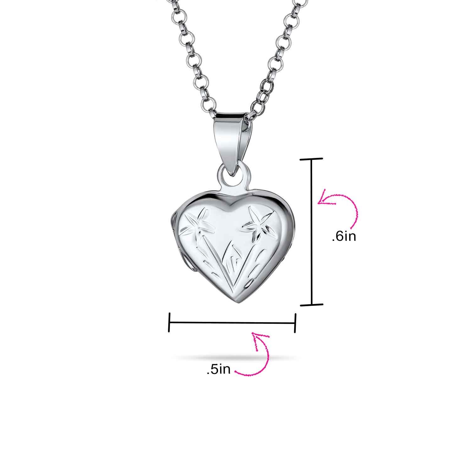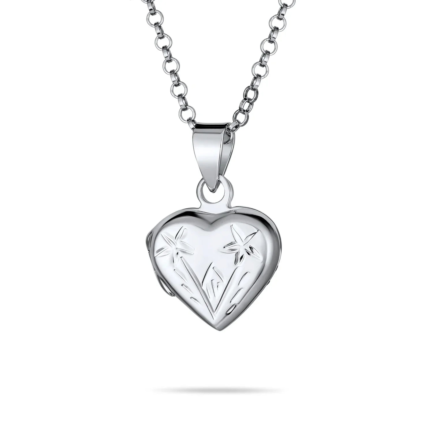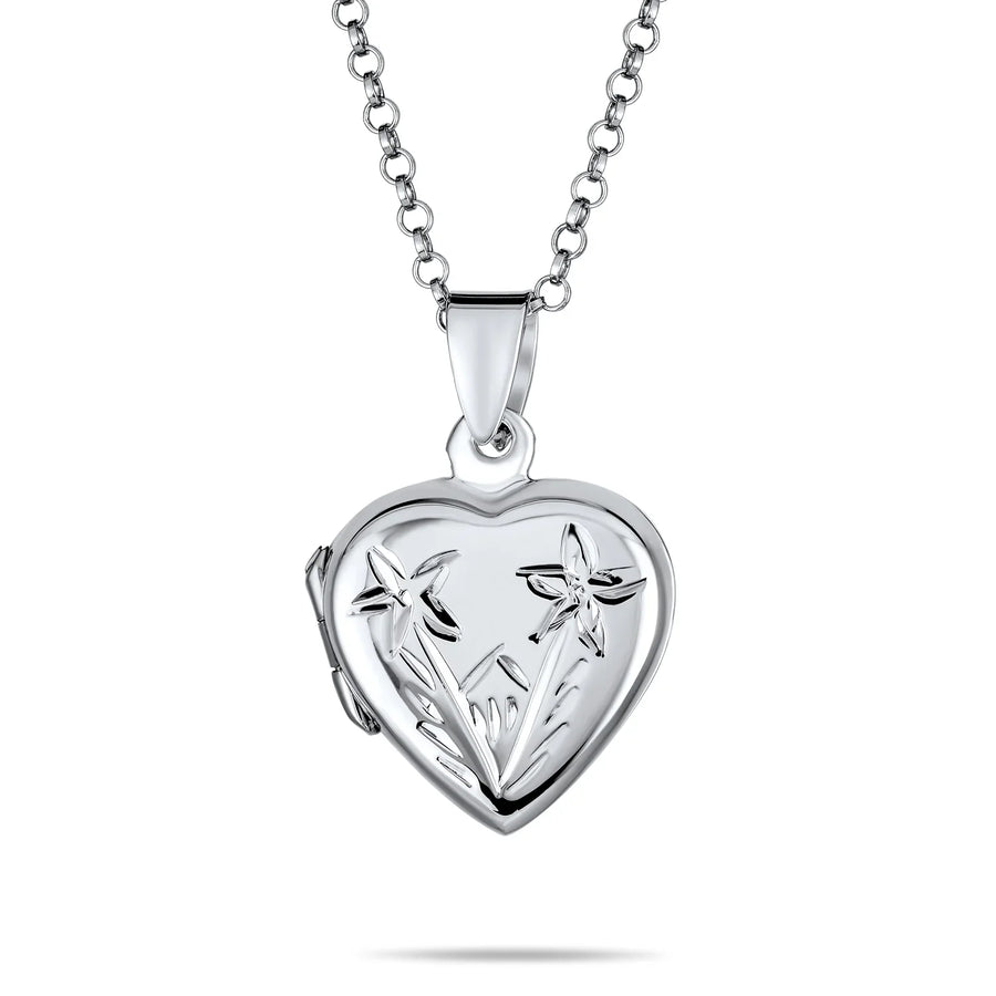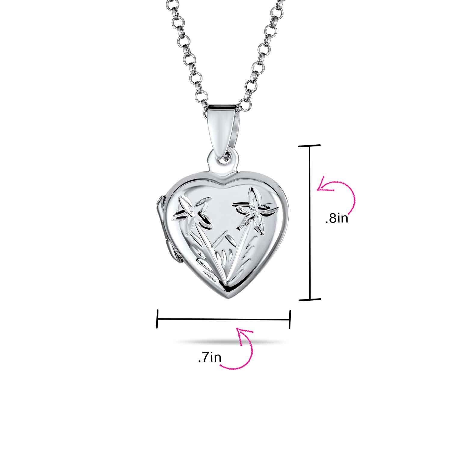 - This heart locket necklace are one of the most timeless jewelry gifts. It holds 2 photo picture, hair of your , BFF, family member or friend or any momenta you choose close to your heart. This personalized locket in .925 sterling silver for women with delicate floral engraved etching on this heart shaped design pendant locket is sure to be her favorite photo memory keepsake.