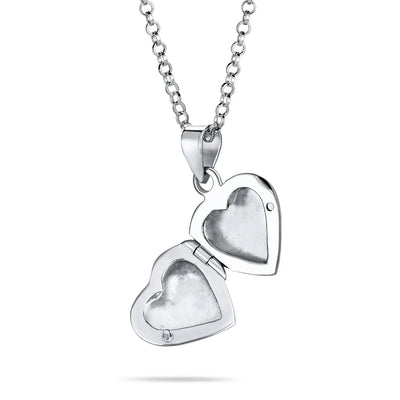 - A picture is worth a thousand words, so say it with this gorgeous heart locket pendant. Finely crafted from .925 Sterling Silver, this heart shaped locket holds 2 photos and features lovely engraved leaf detailing. This .925 Sterling Silver heart pendant has a demure and petite style, making it perfect to pair with any day or night look. Heart lockets make perfect mothers day gifts ad are fantastic pieces of valentines day jewelry. Includes a 16in chain.