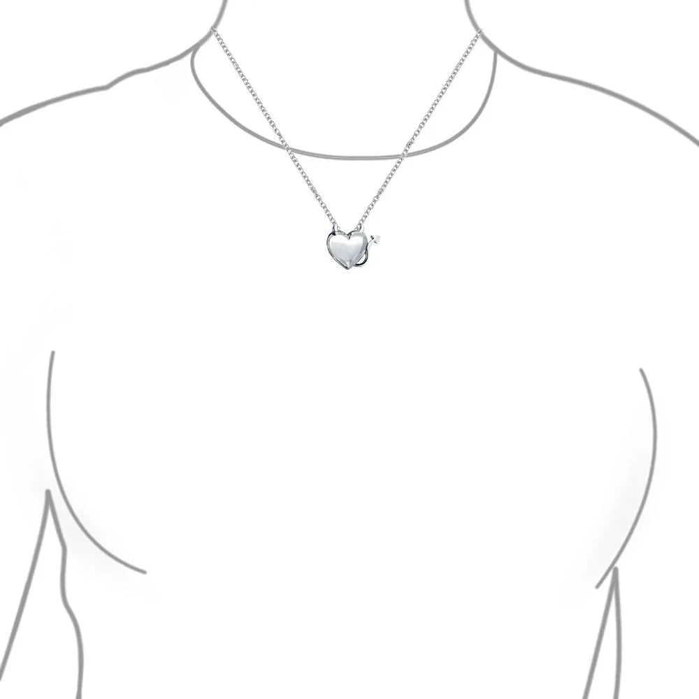 - Add a touch of mischief to your style with this 0.66in sterling silver devil heart necklace. The polished charm features two horns, a tail, and a 16in chain, making it the perfect mix of naughty and nice. Give this unique piece to your sweetheart and watch her grin devilishly.
