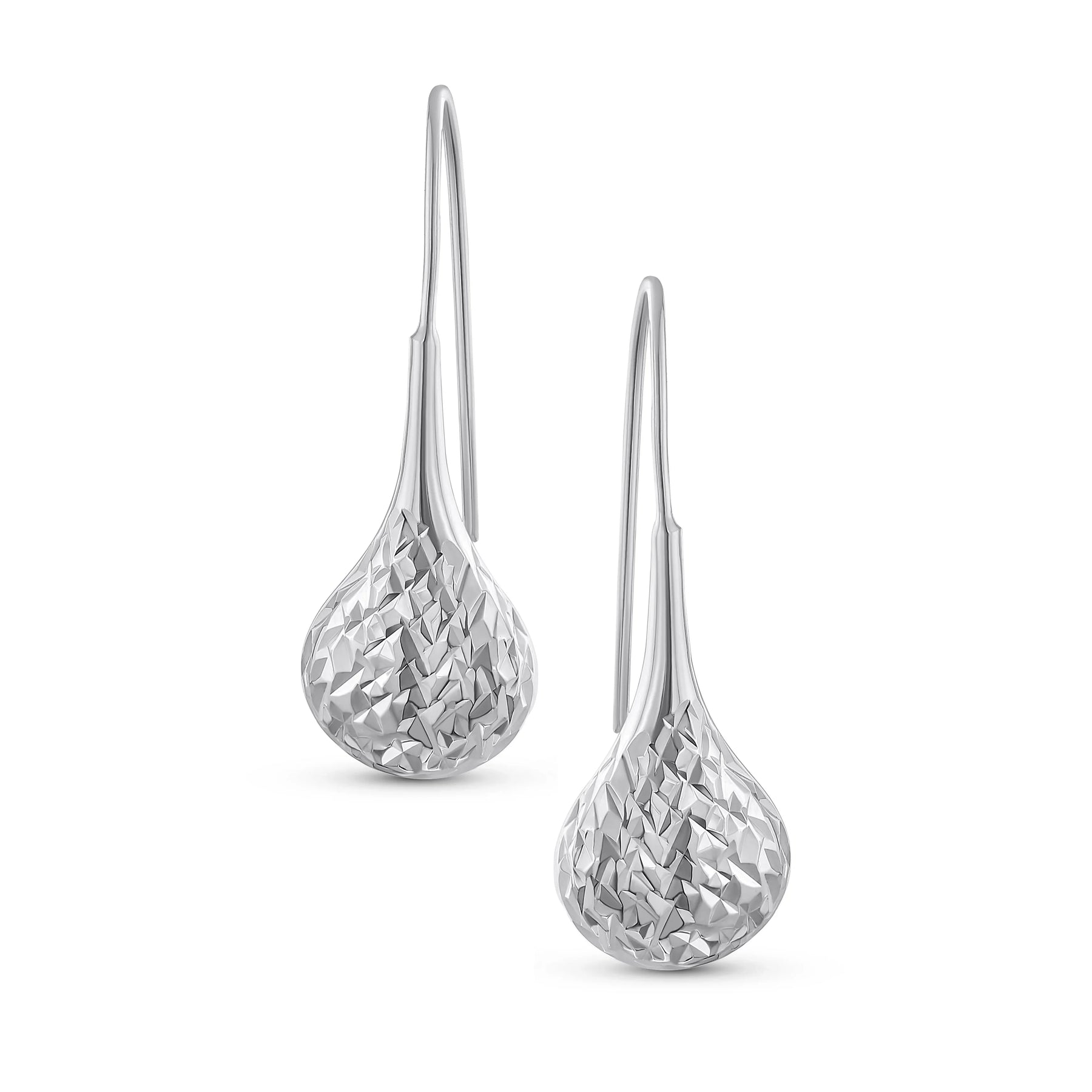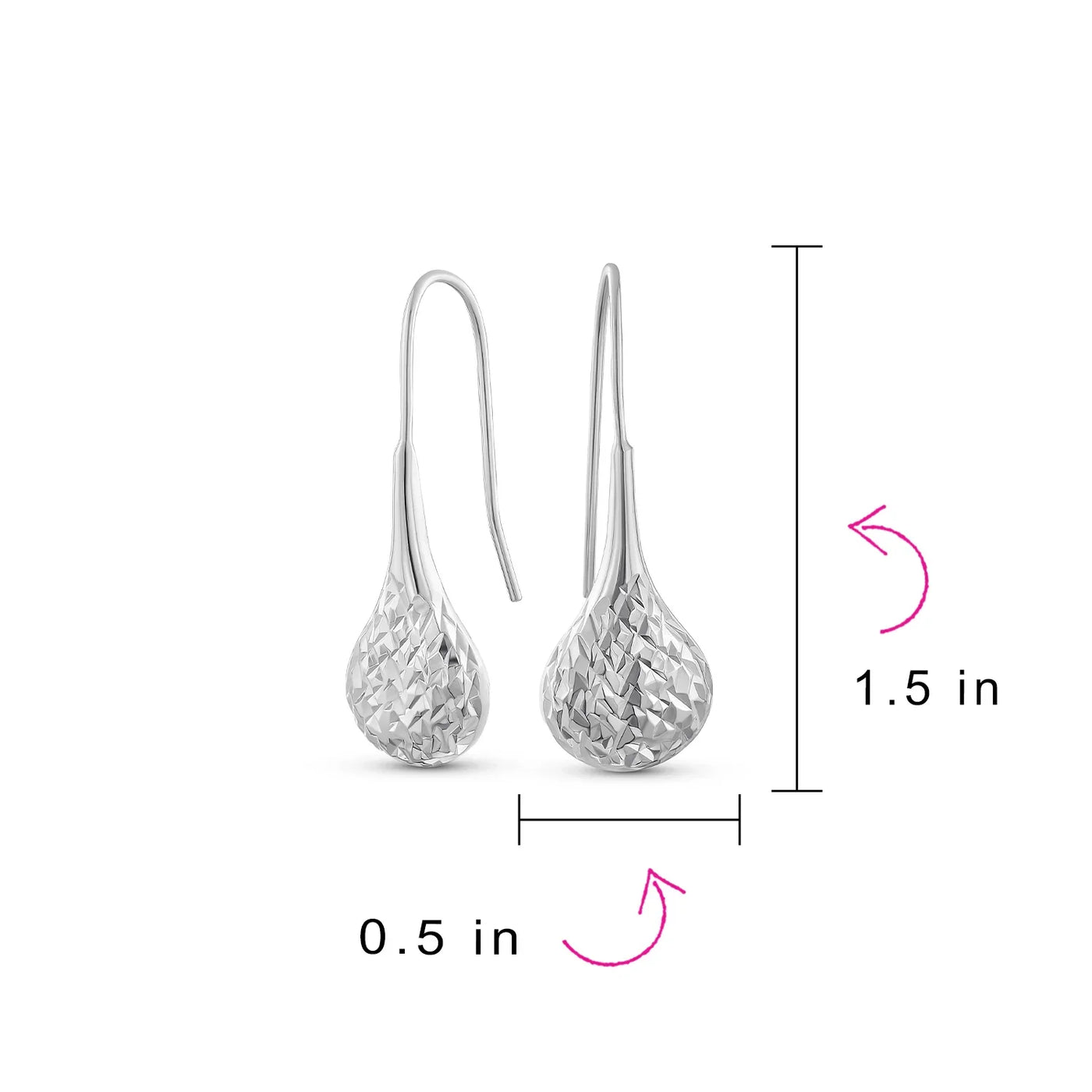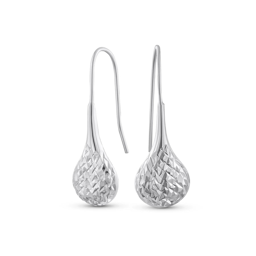- Elevate your style with these chic sterling silver drop earrings. Featuring a puffed teardrop shape with a diamond cut pattern. Crafted from high-quality sterling silver, they exude modern elegance. Perfect for any occasion, they make an ideal gift. Affordable and trendy, a must-have for any jewelry collection.