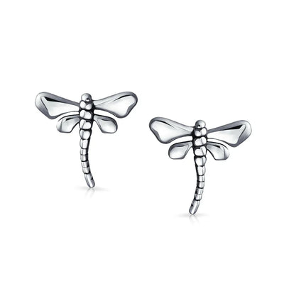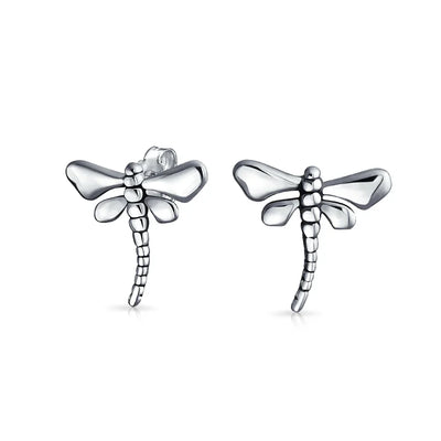 - Enhance your jewelry collection with elegant sterling silver dragonfly stud earrings. Dragonflies symbolize courage, strength, and happiness, adding meaning to your accessories. Inspired by art, literature, and Japanese haiku, these earrings capture nature's beauty. Crafted from 925 sterling silver, they ensure durability and a lightweight feel. The stud push back closure offers a secure, comfortable fit for all-day wear. Stay trendy with these affordable dragonfly earrings, ideal for insect jewelry lovers and nature enthusiasts. Perfect as a gift or a personal treat, they’ll become a cherished favorite. Don't miss out—order your exquisite dragonfly stud earrings today and elevate your style with nature's elegance.