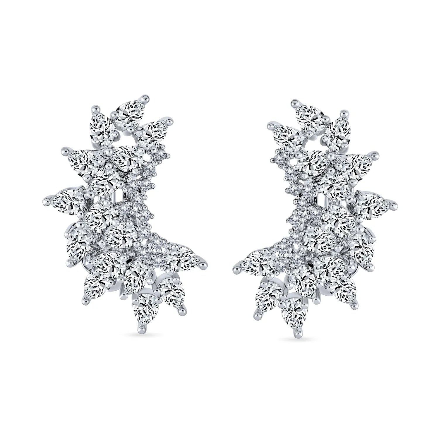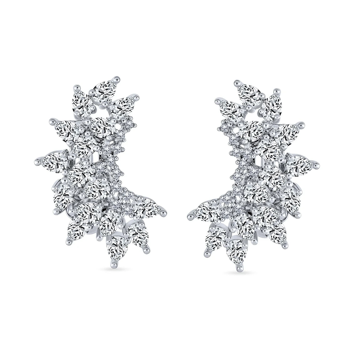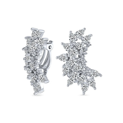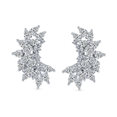 • Stunning crescent-shaped earrings feature dazzling pear-cut CZ clusters in an eye-catching design. Perfect for weddings, galas, and special occasions. Rhodium-plated brass ensures tarnish-free shine and durability. High-quality cubic zirconia offers exceptional brilliance. Be the center of attention with these best-selling, sparkling earrings!