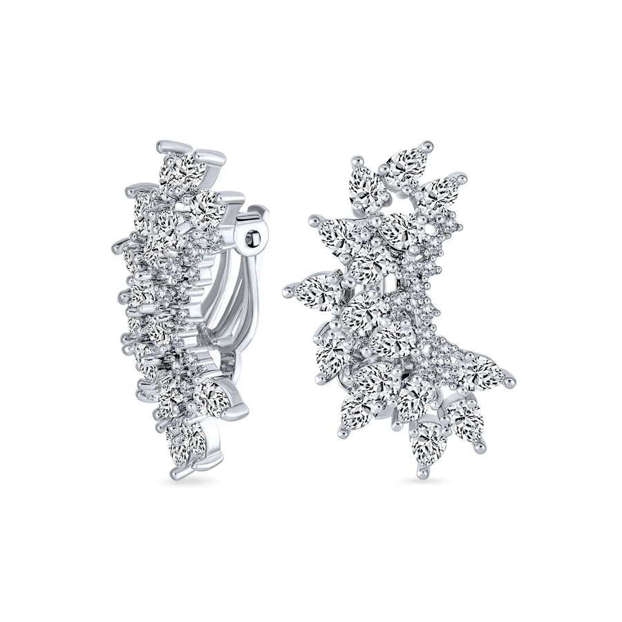Elegant Bridal Teardrop CZ Leaf Clip-On Earrings for Weddings and Proms - Bling Jewelry