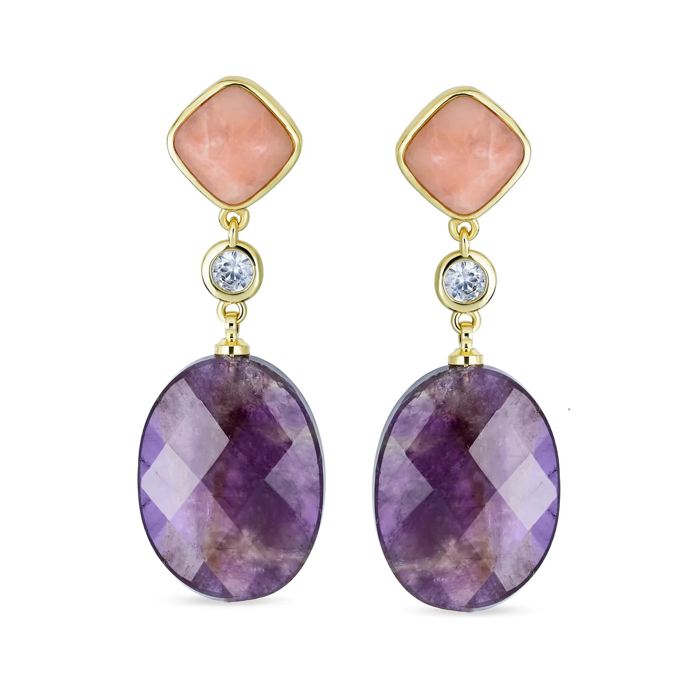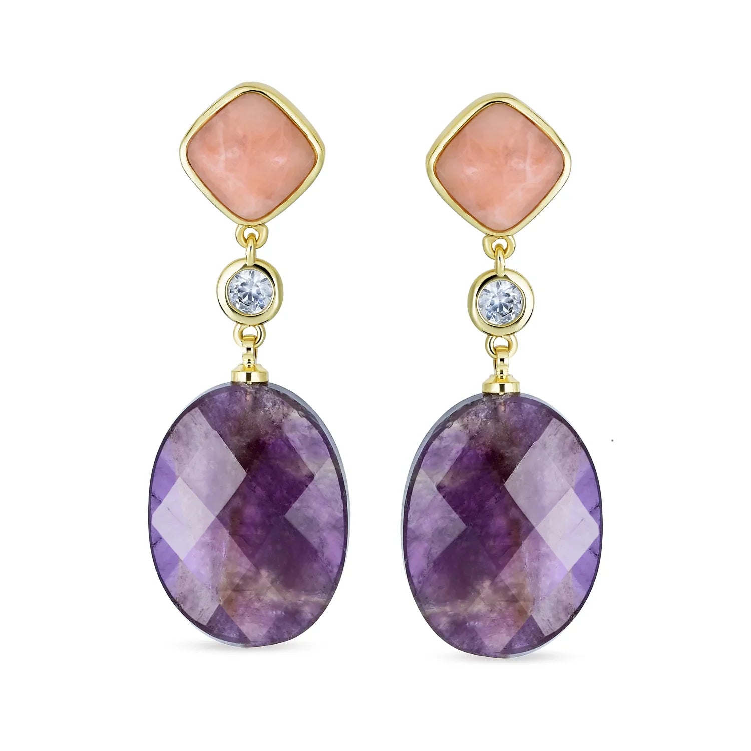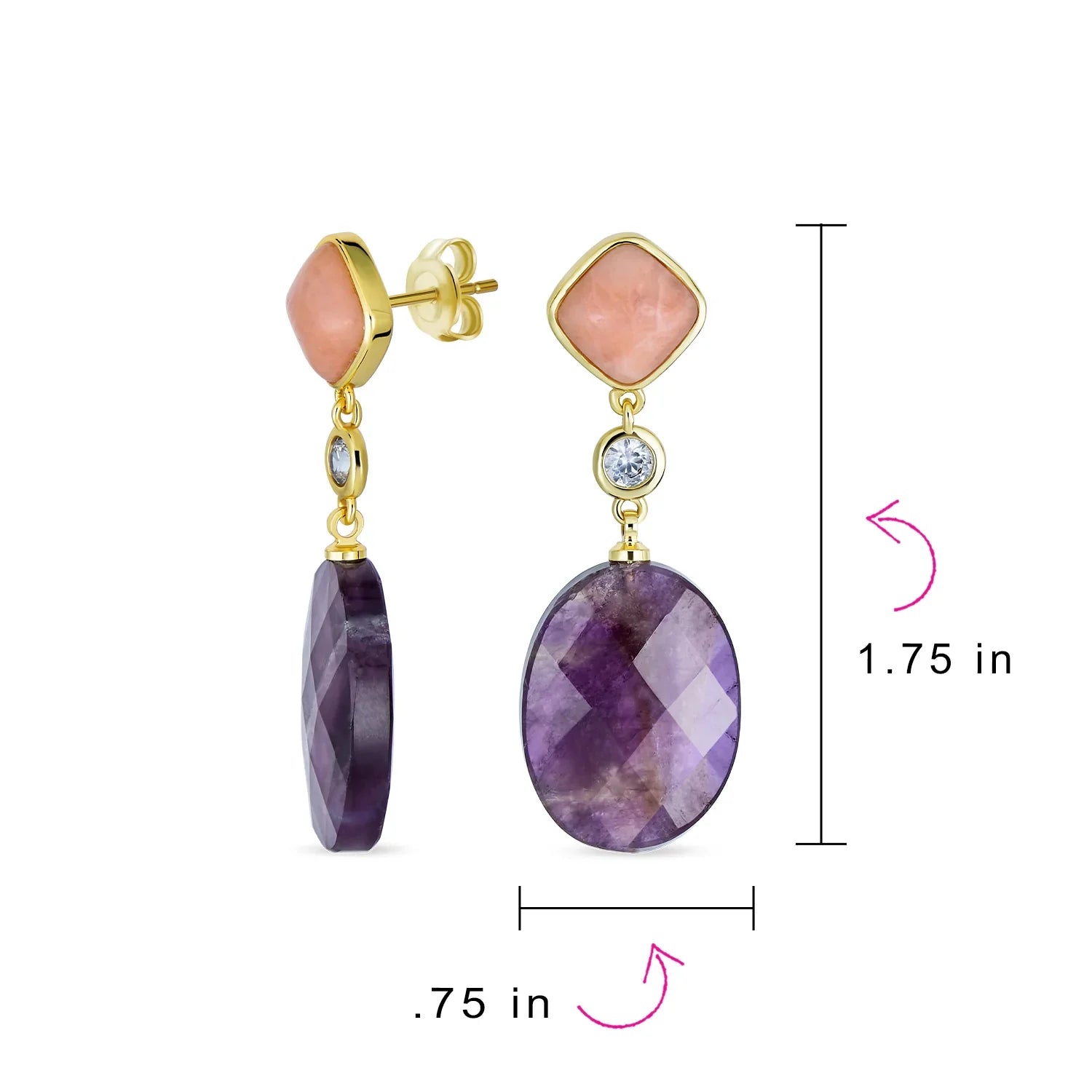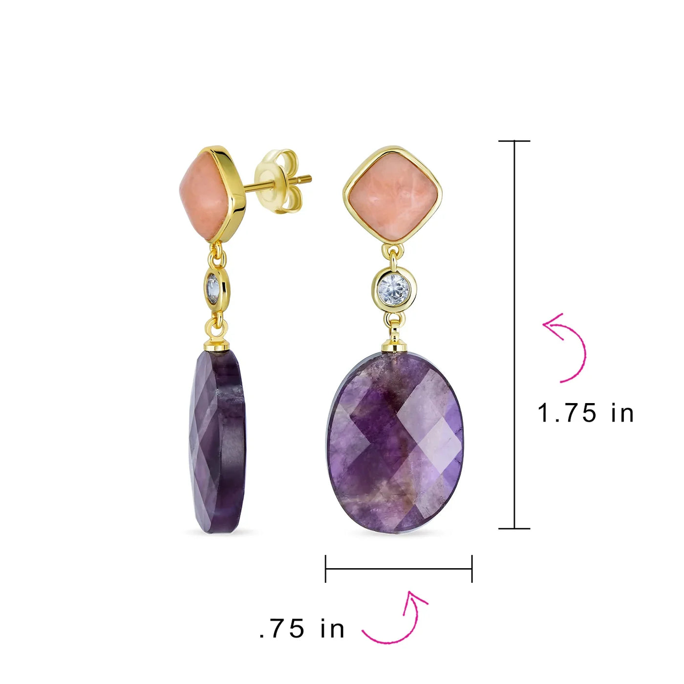 • Unique Design: semi-precious stones are simple pink and clear cyrstal accent with large purple oval drop stone earrings with various form are very trendy for todays Fashion Trends