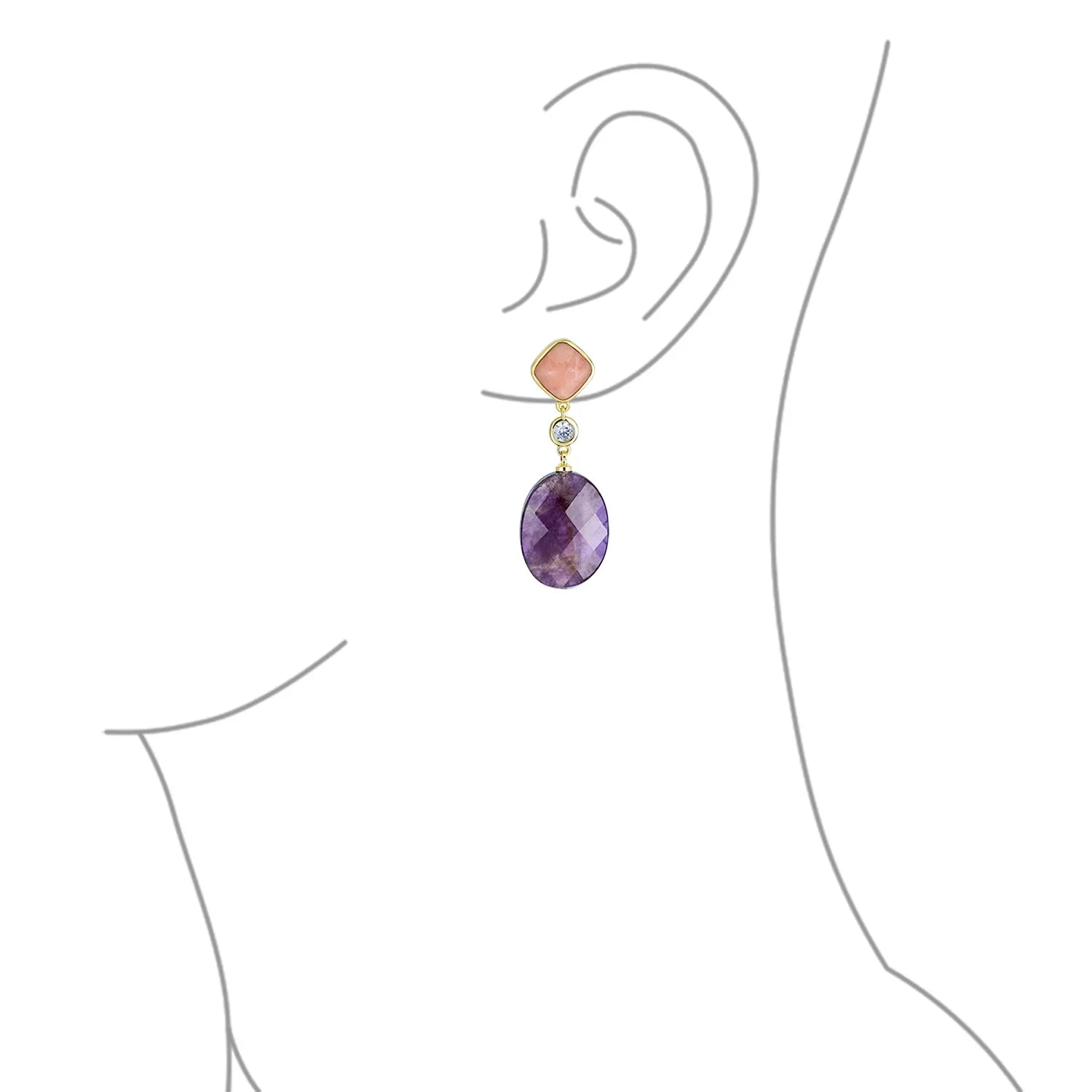 Elegant Dangle Gemstone Earrings with Dusty Rose Crystal & Amethyst Gold Plated
