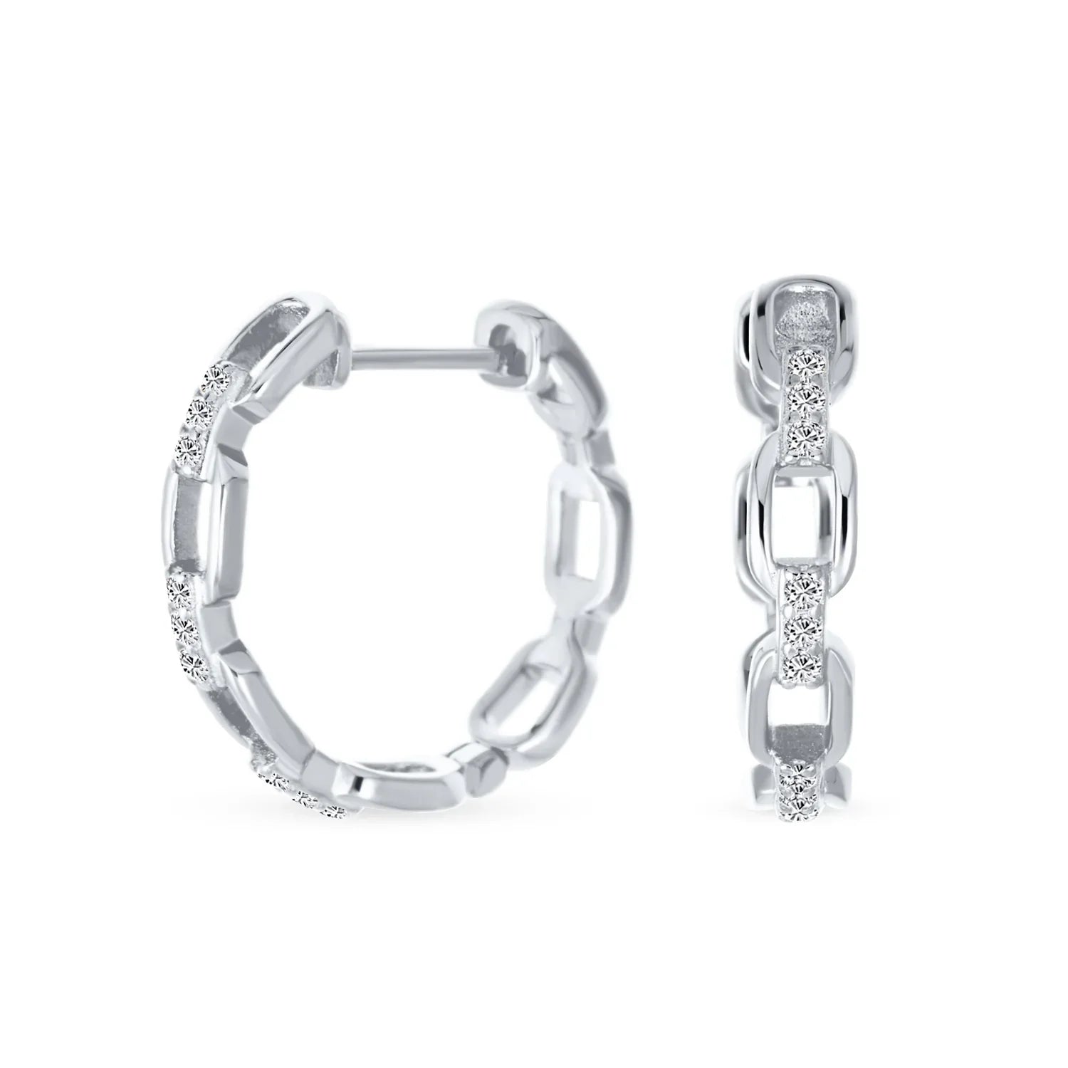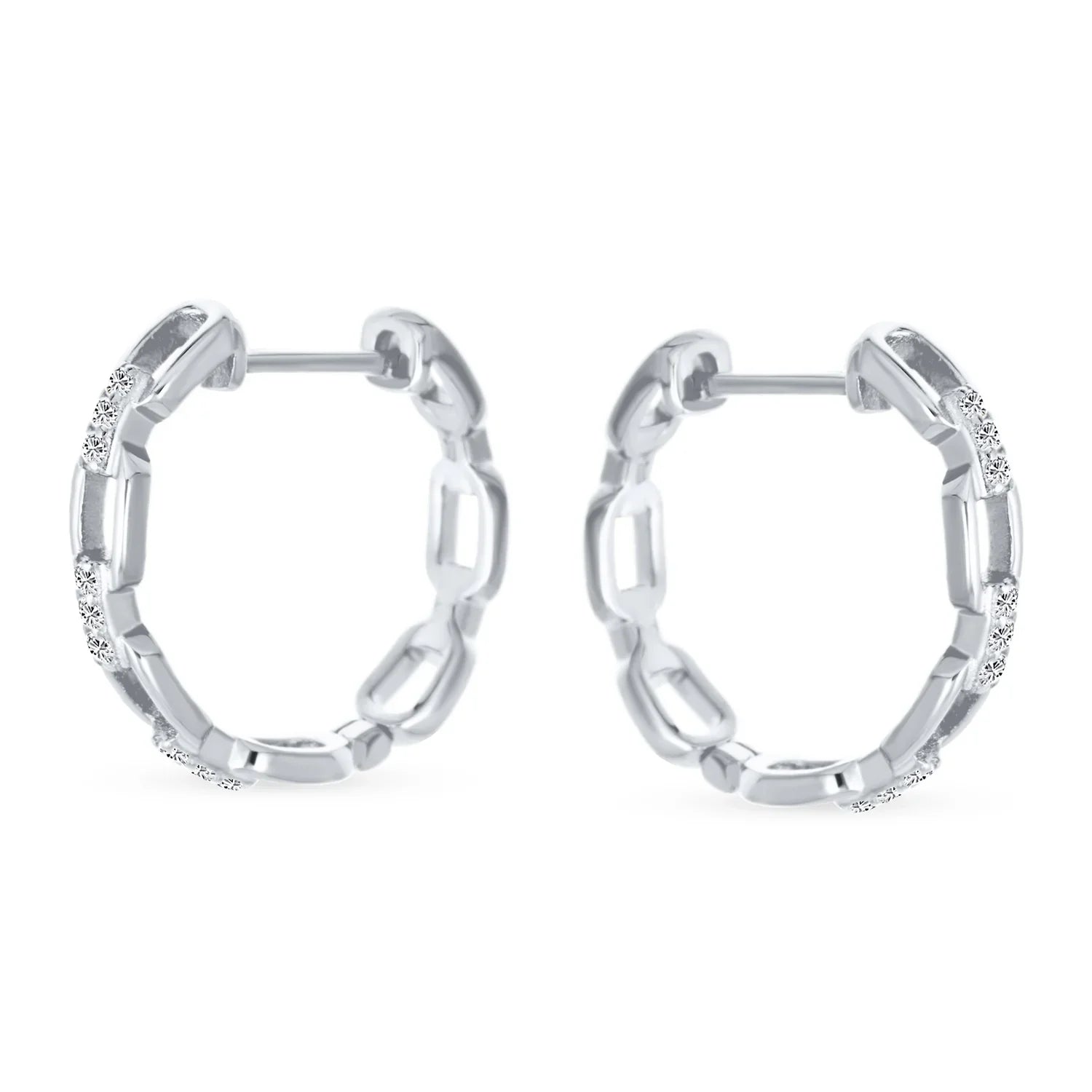 - Freshen up your look with a dash of modern style with these striking and lustrous rhodium plated sterling silver is tarnish free. The CZ link alternating allow you to shimmer and shine from every angle. This classic elegant modern bridal hoops in clear white CZs is set like all fine jewelry. Splendid for any formal holiday party weddings or bride gift for bridesmaids.