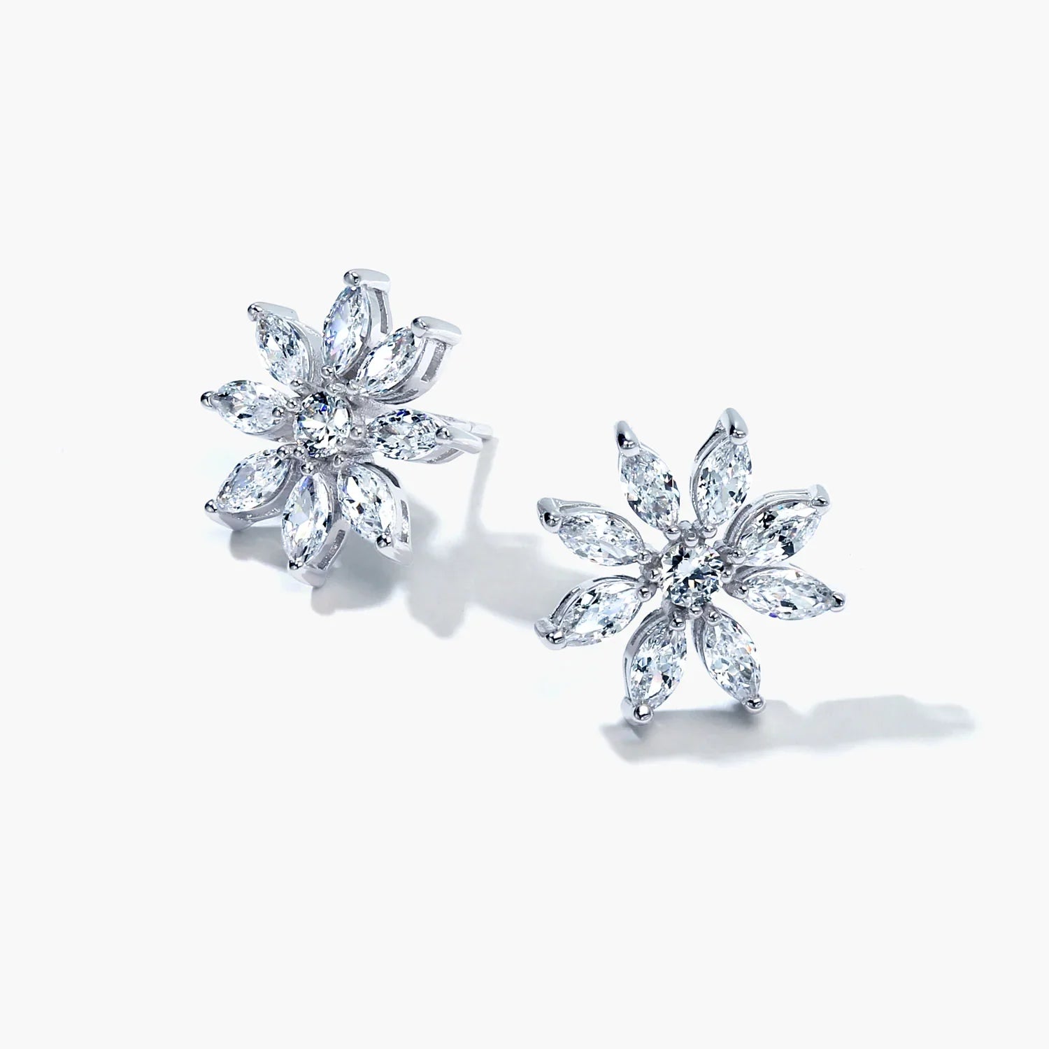 • Elevate your bridal party's elegance with these stunning flower stud earrings. Perfect for weddings, these earrings add a dazzling touch. Marquise-shaped cubic zirconia stones mimic flower petals, enhancing any bouquet. Your friends will shine and cherish these affordable sterling silver studs. Embrace spring's fresh look with our exquisite flower stud earrings, ideal for any occasion.