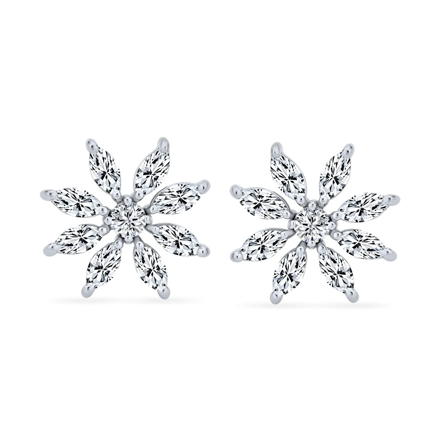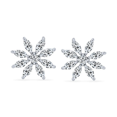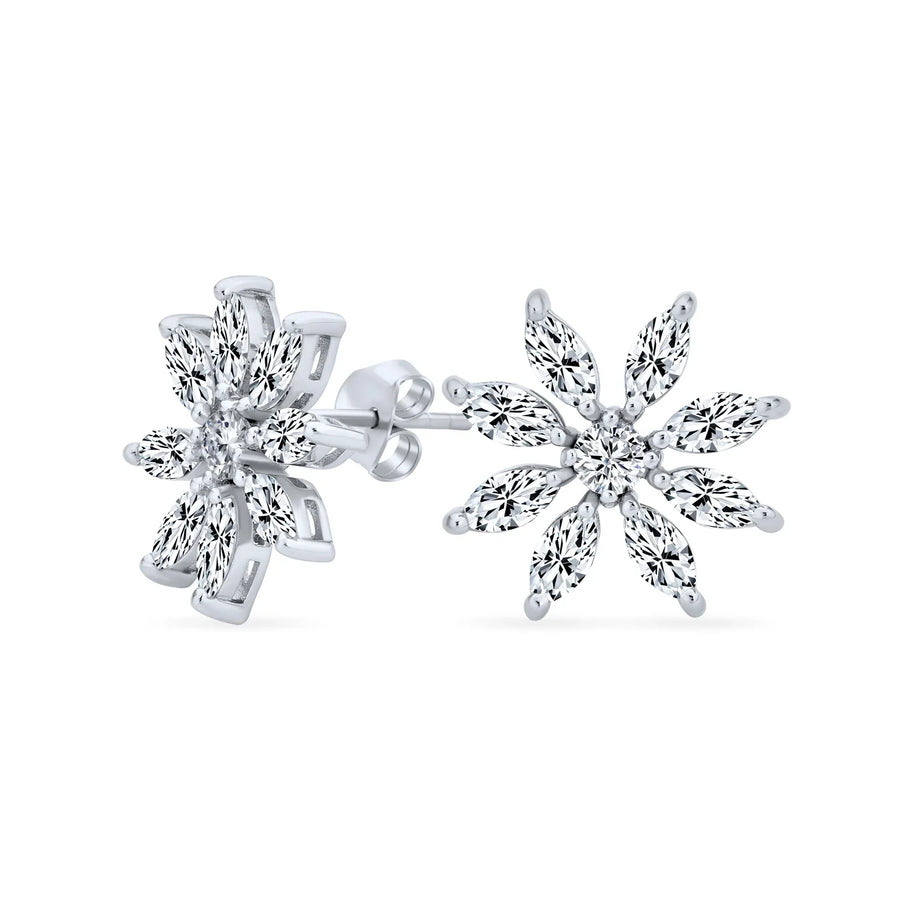 Elegant Bridal Holiday Snowflake Flower Marquise CZ Stud Earrings Silver - Bling Jewelry
