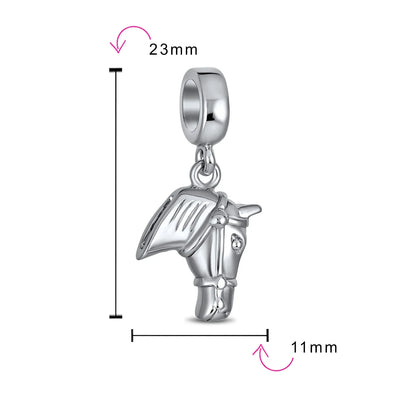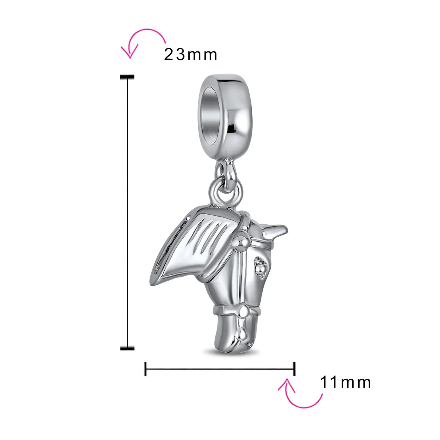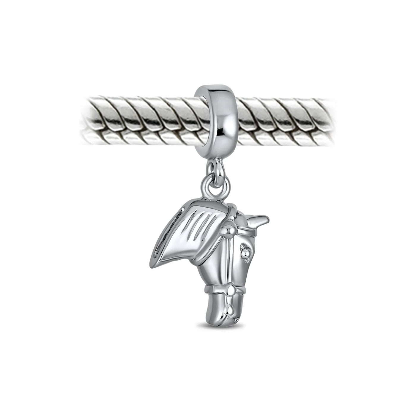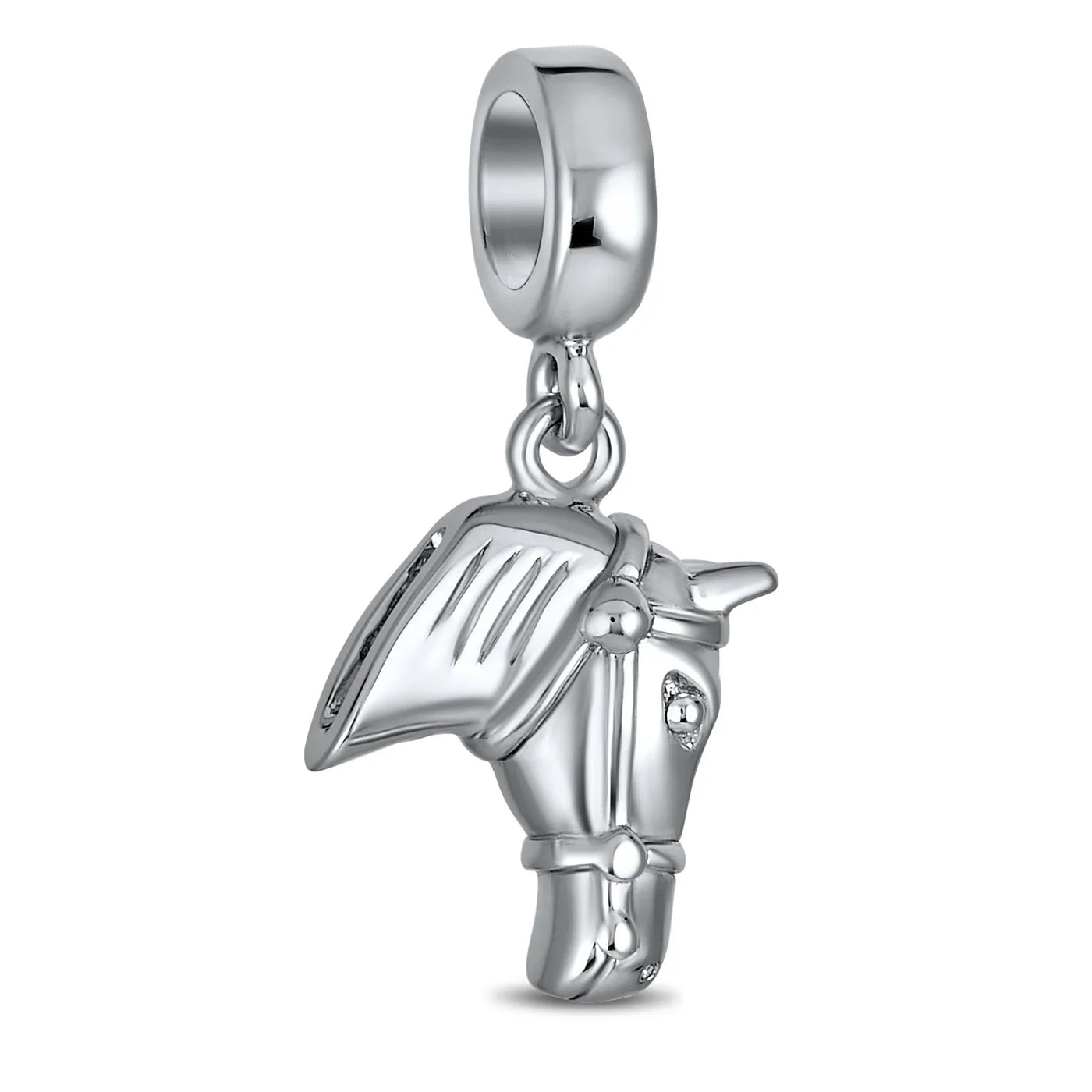 - Add equine flair to your bead bracelet. Our horse charm bead showcases your love for animals and hobbies. This sterling silver bead features a dangling horse head with mane, face, and bridle. Perfect for charm bead bracelets, this sleek horse jewelry is a must-have. Giddy up and order equestrian beads for show jumpers and horse lovers.