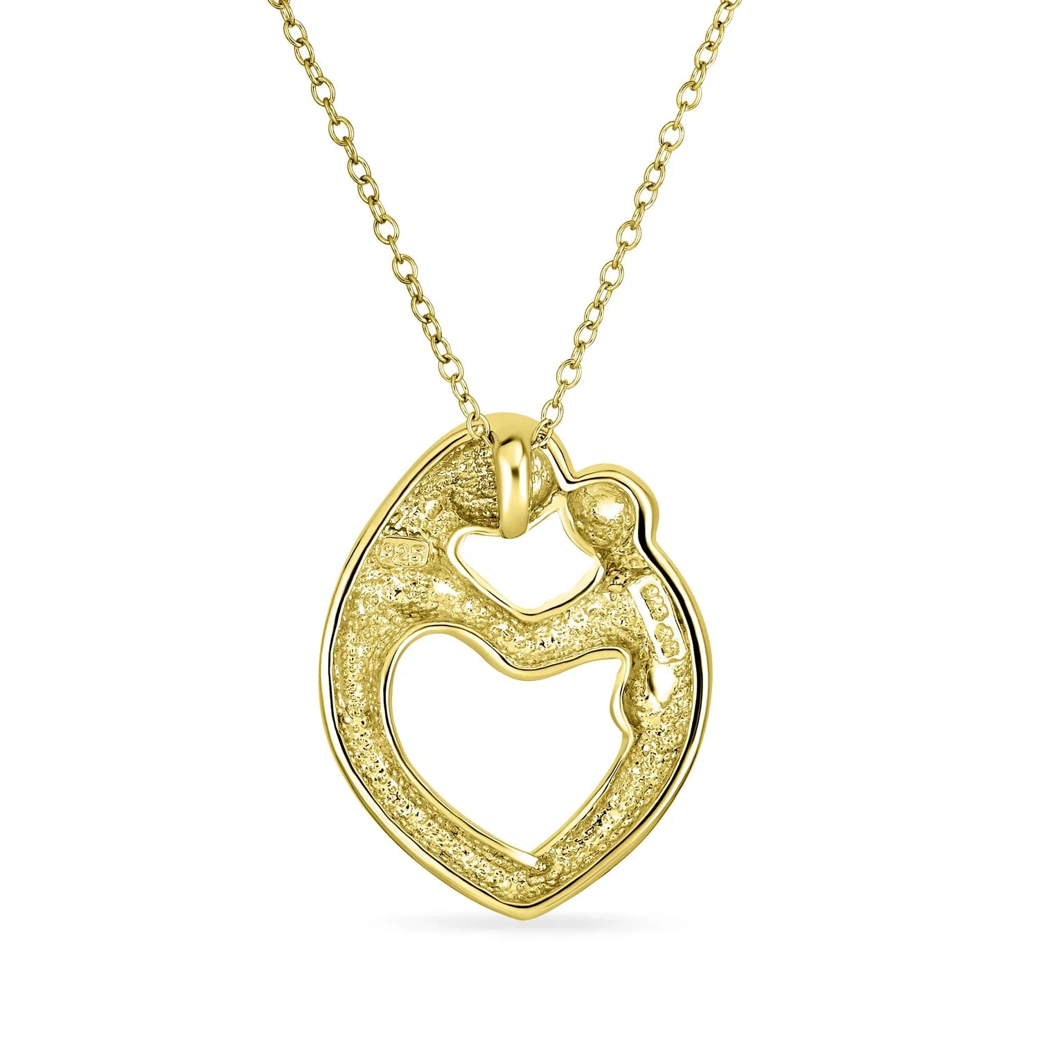 Family Heart Pendant Necklace Gold Plated Sterling Silver Yellow Rose Design