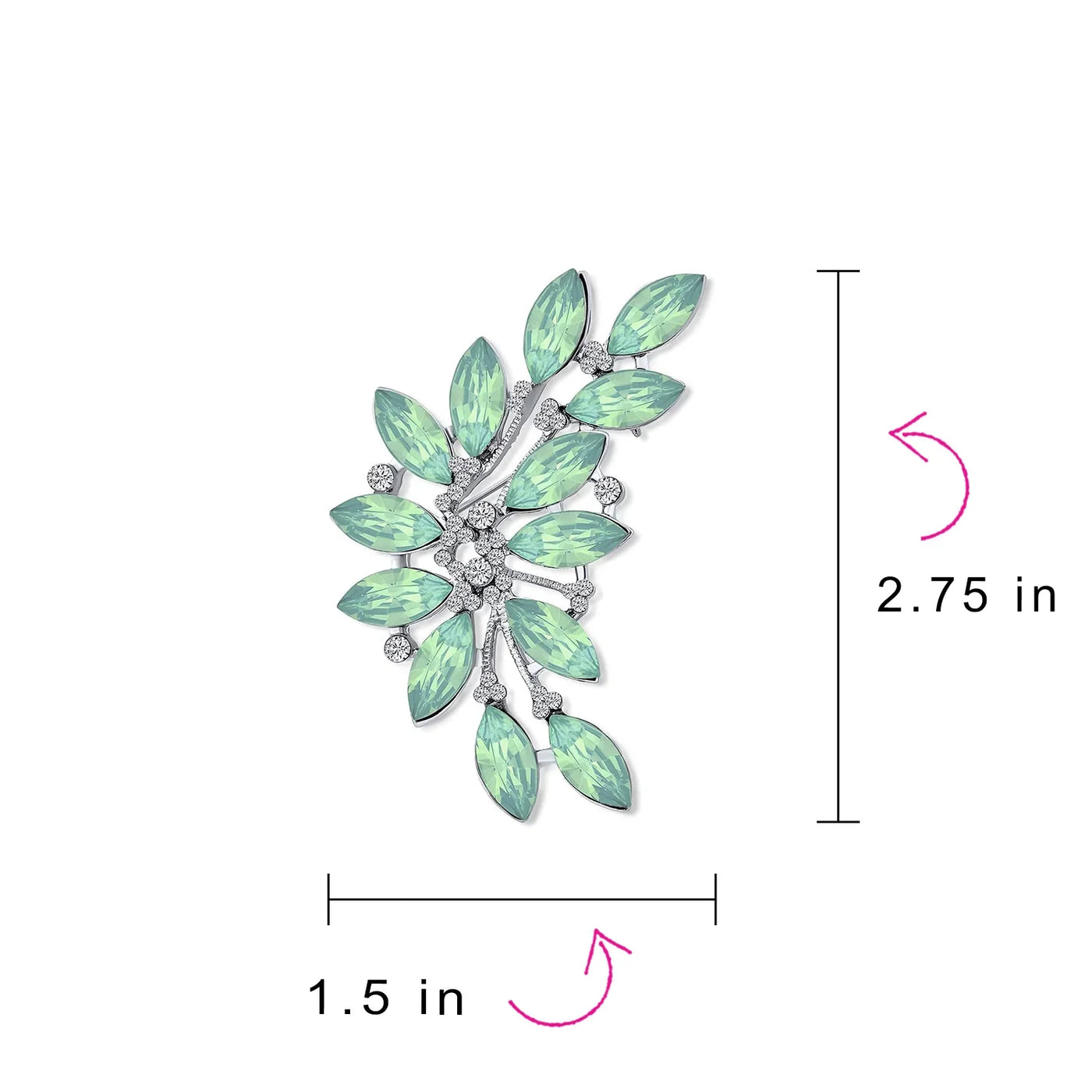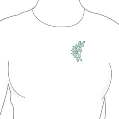 - Elevate your style with our stunning marquise crystal Brooch. Add a vibrant splash of color to your wardrobe effortlessly. Perfect for both work and play, our green leaf pin livens up any jewelry collection. Ideal for weddings, this affordable bridal leaf Brooch introduces a unique touch of green. Celebrate August birthdays with this exquisite birthstone jewelry piece.