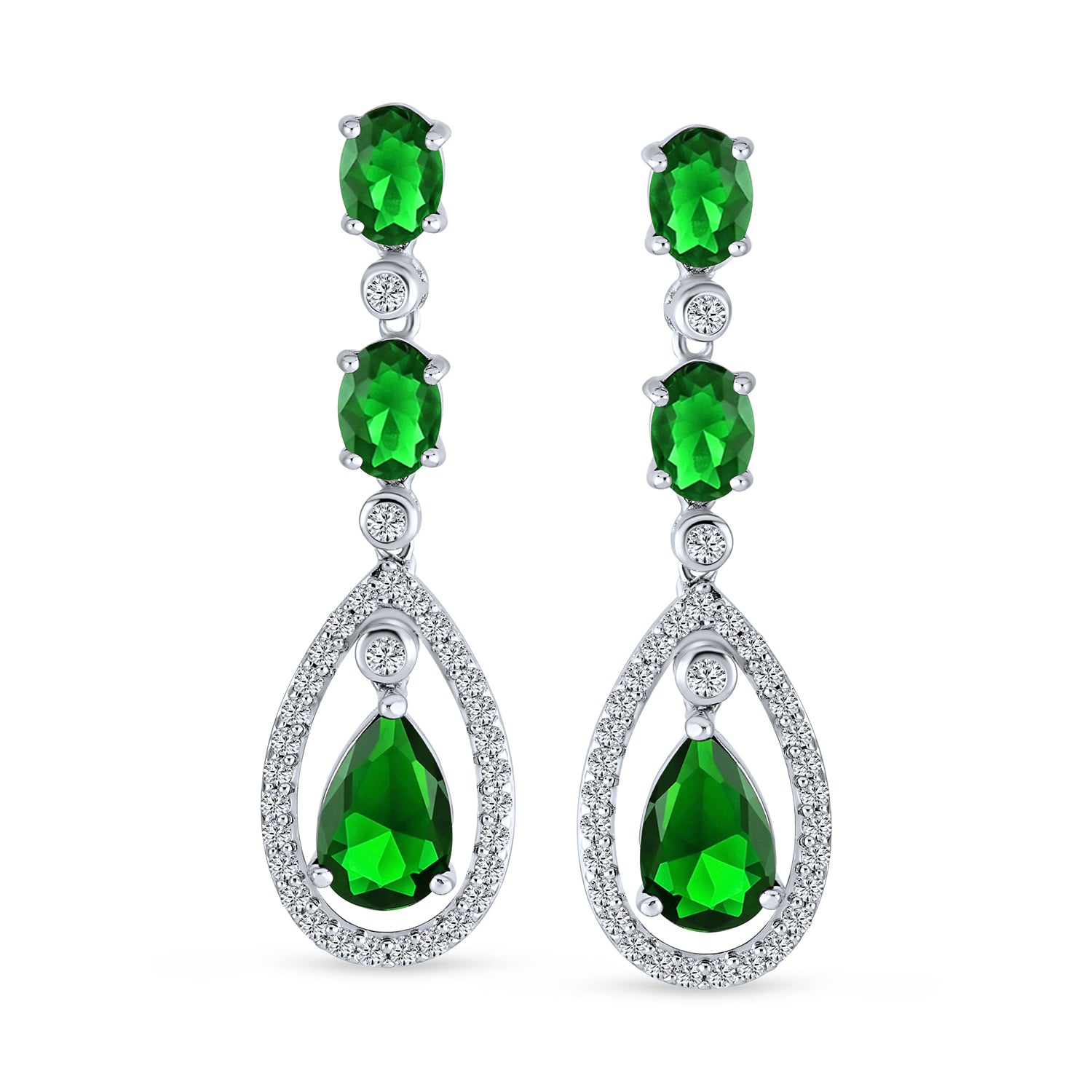 - These Bridal dangle cubic zirconia chandelier earrings are breathtakingly beautiful and beguiling. Drop dangle chandelier earrings have a timeless look that is perfect for your Special day and every day that you want to look and feel special. These cubic zirconia teardrop dangle chandelier earrings sparkle in a mesmerizing fashion. Featuring oval, teardrop and pave round cut clear CZ stones, these silver plated dangle chandelier earrings will turn head no matter where you go. Choose these oval teardrop chandelier dangle drop earrings for a formal occasion and prepare to astound your friends. Order these drop CZ silver chandelier earrings today. Wear these dangle drop chandelier cubic zirconia earrings and be a bride that is envied. Buy this alluring pair of cubic zirconia drop dangle chandelier earrings for your Bridal party and all of the April Birthdays that you know and be admired. These push back closure earrings are for pierced earrings only.