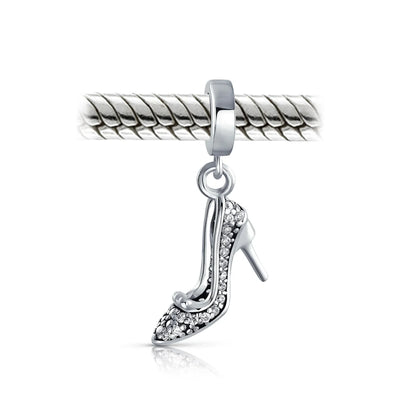 - Enhance your bead collection with this exquisite high heel stiletto charm. Perfect for shoe lovers and fashion enthusiasts. Adorned with sparkling crystals, it adds elegance to any look. Crafted from premium .925 silver, it's a must-have accessory.