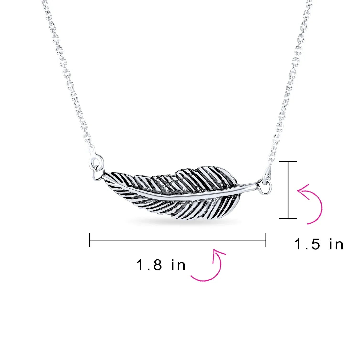 Native American Style Feather Leaf Pendant Necklace Bohemian Western Jewelry 18" - Bling Jewelry