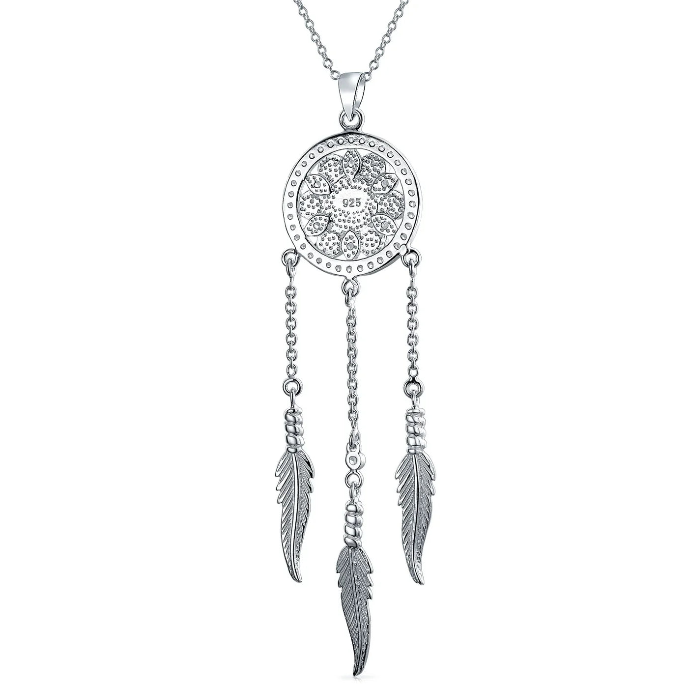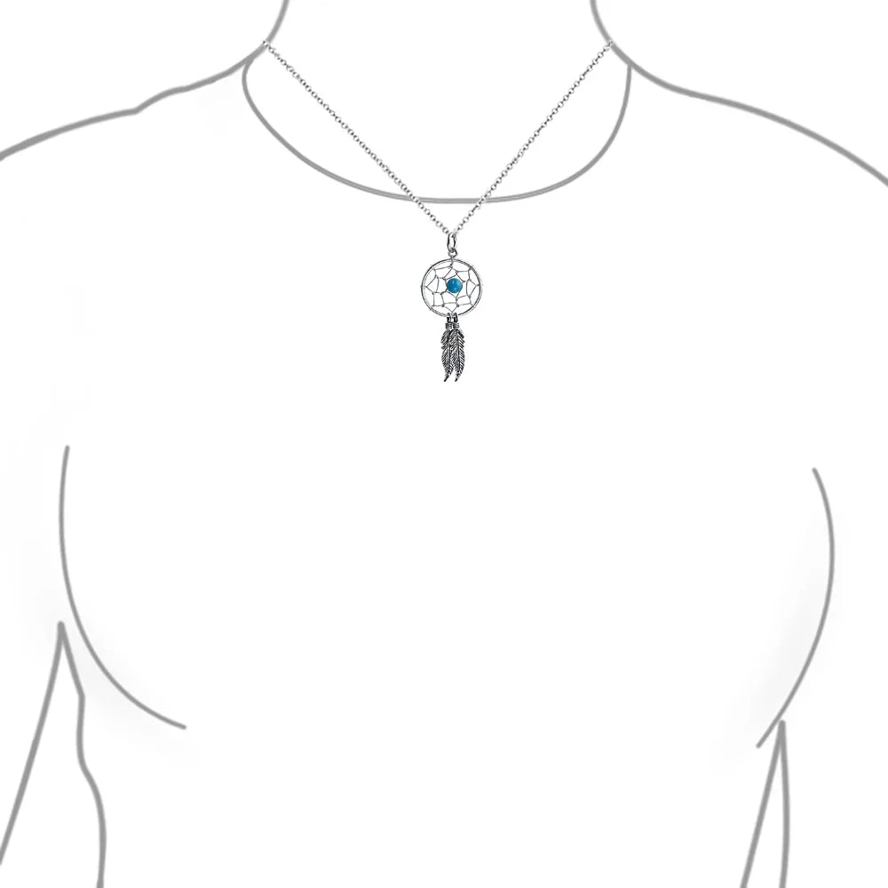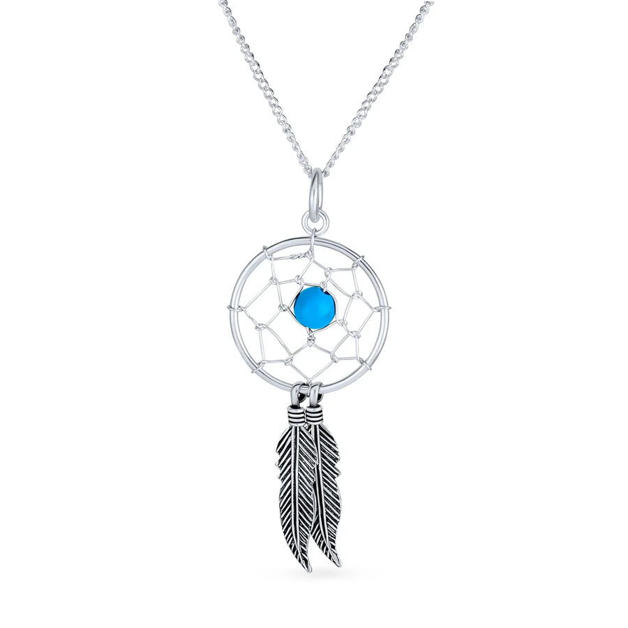 • Inspired By Authentic Native American Dreamcatcher, was created to capture all dreams, filter out the bad ones and allow the your good dream to flourish. Dream Catcher Pendant Necklace - Our sterling silver necklace shows off a traditional woven dream catcher, complete with dangling feather accents and a bright compressed Turquoise orb.