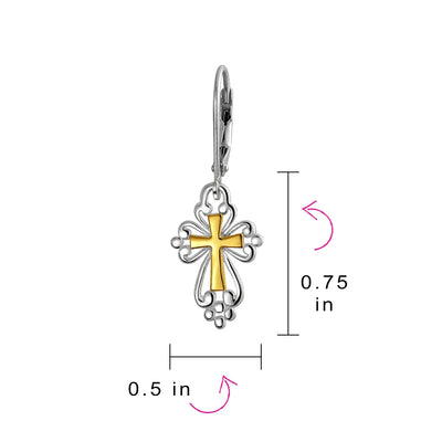 - ELEGANT SPIRITUAL DESIGN - Celebrate your faith with these elegant, secure hinge leverback dangle cross earrings, featuring a two-tone medal and exuding a medieval, old-world charm.