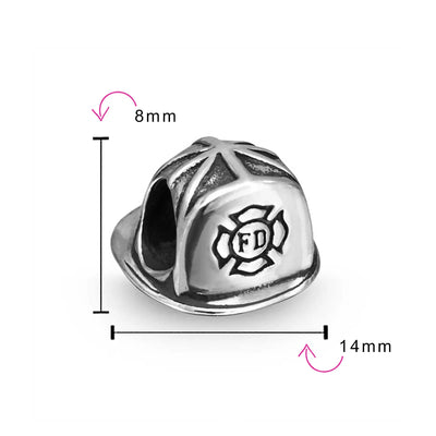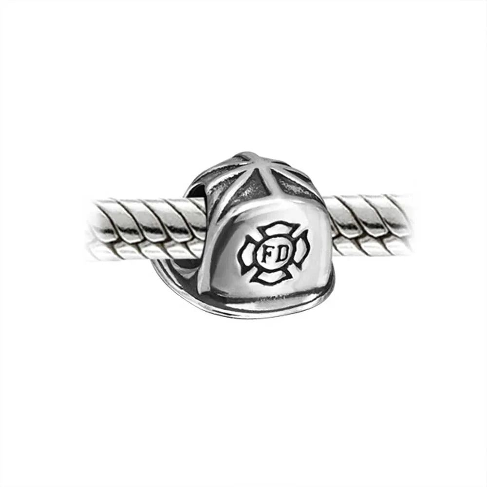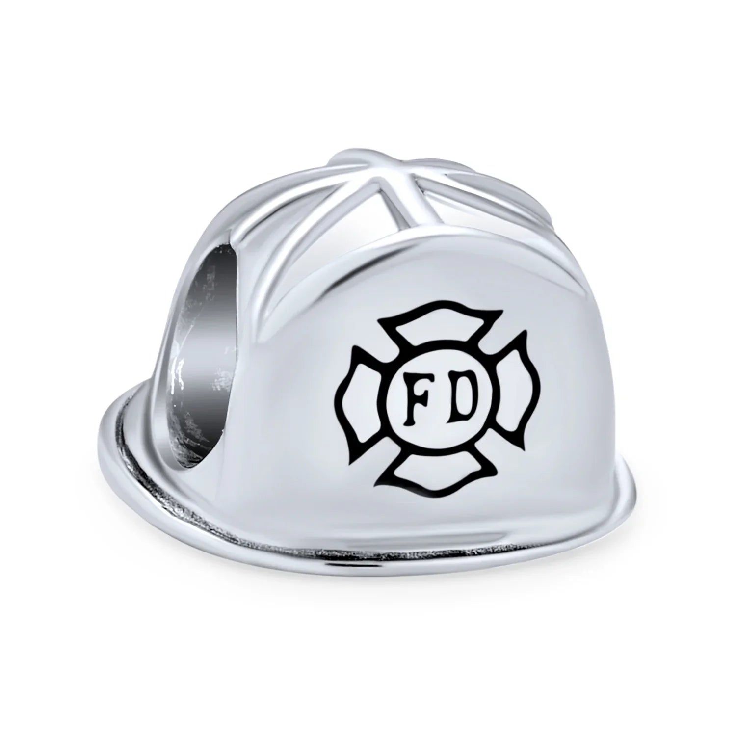 - Honor society's greatest heroes with our sterling silver firefighter helmet bead. This .925 silver charm features an FD shield design. Perfect for your charm bracelet or as a gift. Show support for your local fire department. Pair with our police badge or coast guard bead for a heroes bracelet. Get your firefighter hat bead today!