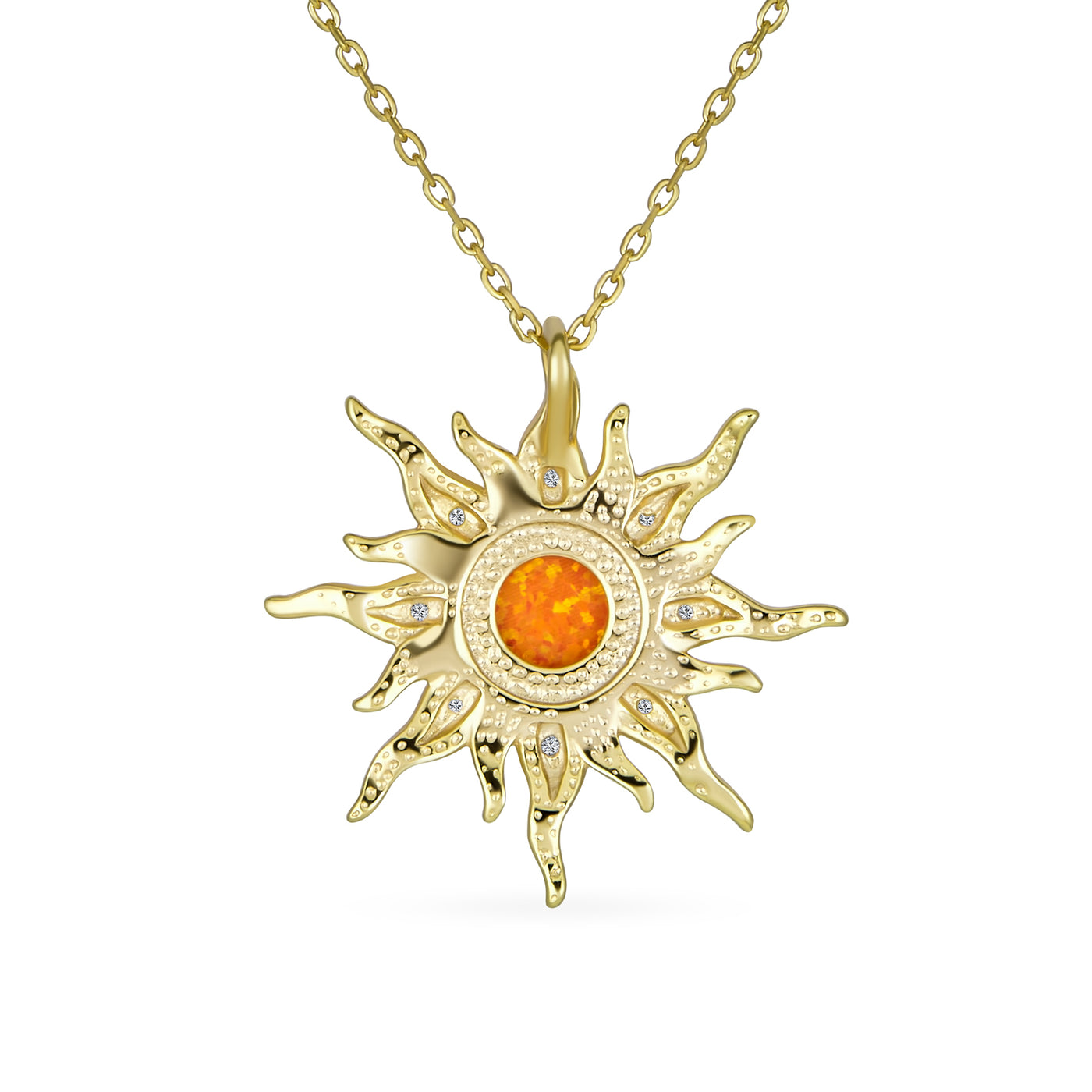 • LARGE BEAUTIFUL DESIGN - Highlighted by a opalescent sun motif design with dazzling cz accent for stunning style and a burst of sumptuous color, choose these beautifully, eye-catching opal starburst pendant, add a pop of color to your summer jewelry collection. A perfect October birthstone gift for anyone who shines.