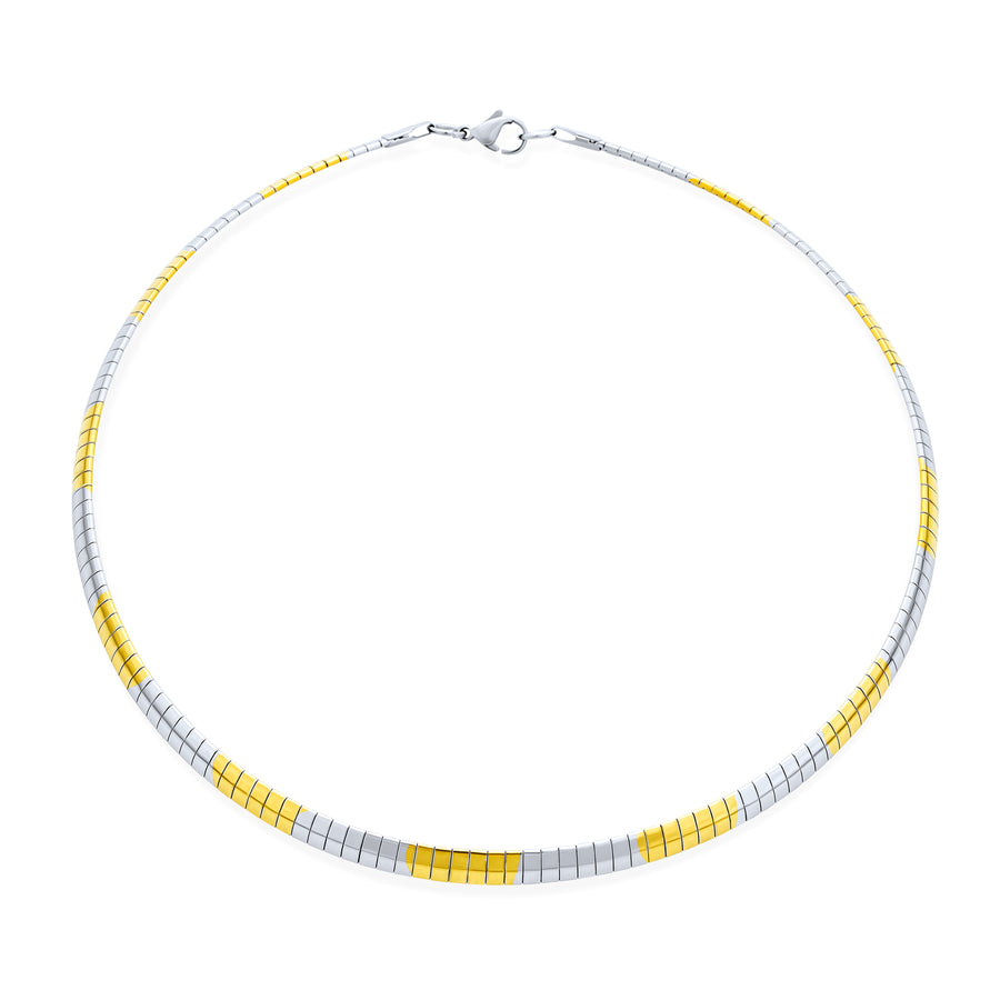 Flexible Flat Gold Silver Two Tone Collar Necklace 5MM Omega Snake Chain Choker