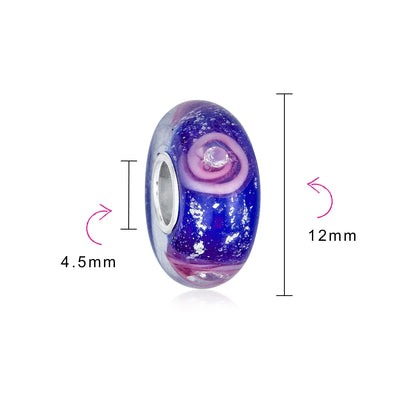 - Material: Genuine .925 Sterling Silver Anti Tarnish Rhodium Plated, Murano glass, HYPOALLERGENIC - Lead-Free Nickle-free. Each piece is stamped .925 guarantees quality and craftmanship. Measure: Bead: 12mm Diameter 4.5 mm Bead Core Weight: 1.8 Grams