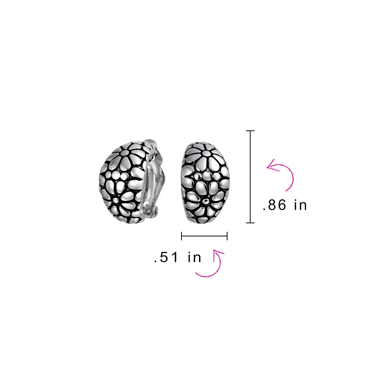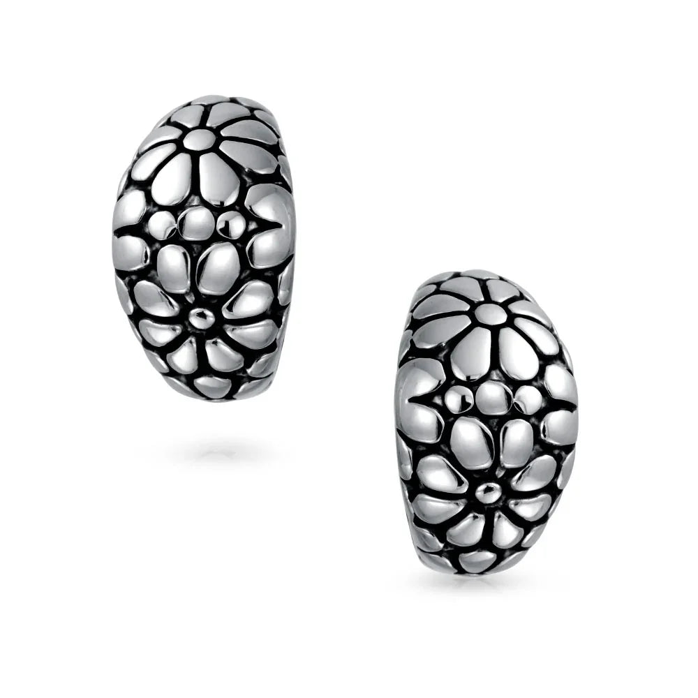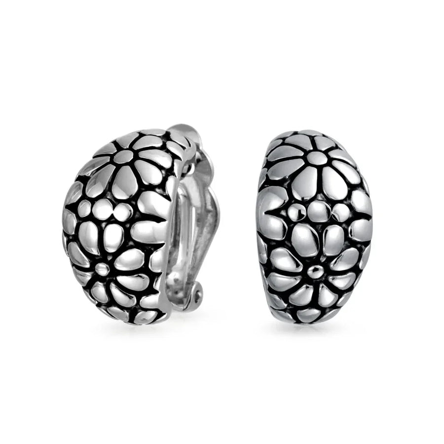 - These retro daisy clip-on half hoops are perfect for any occasion. Rhodium or gold plated, they offer secure comfort for unpierced ears.