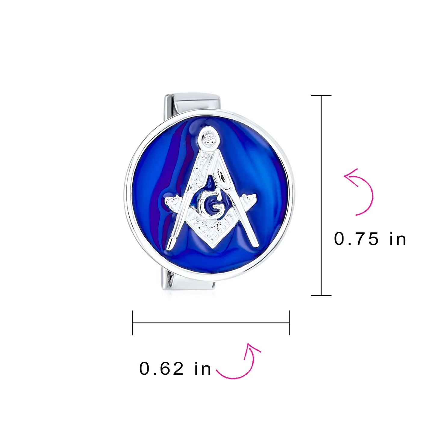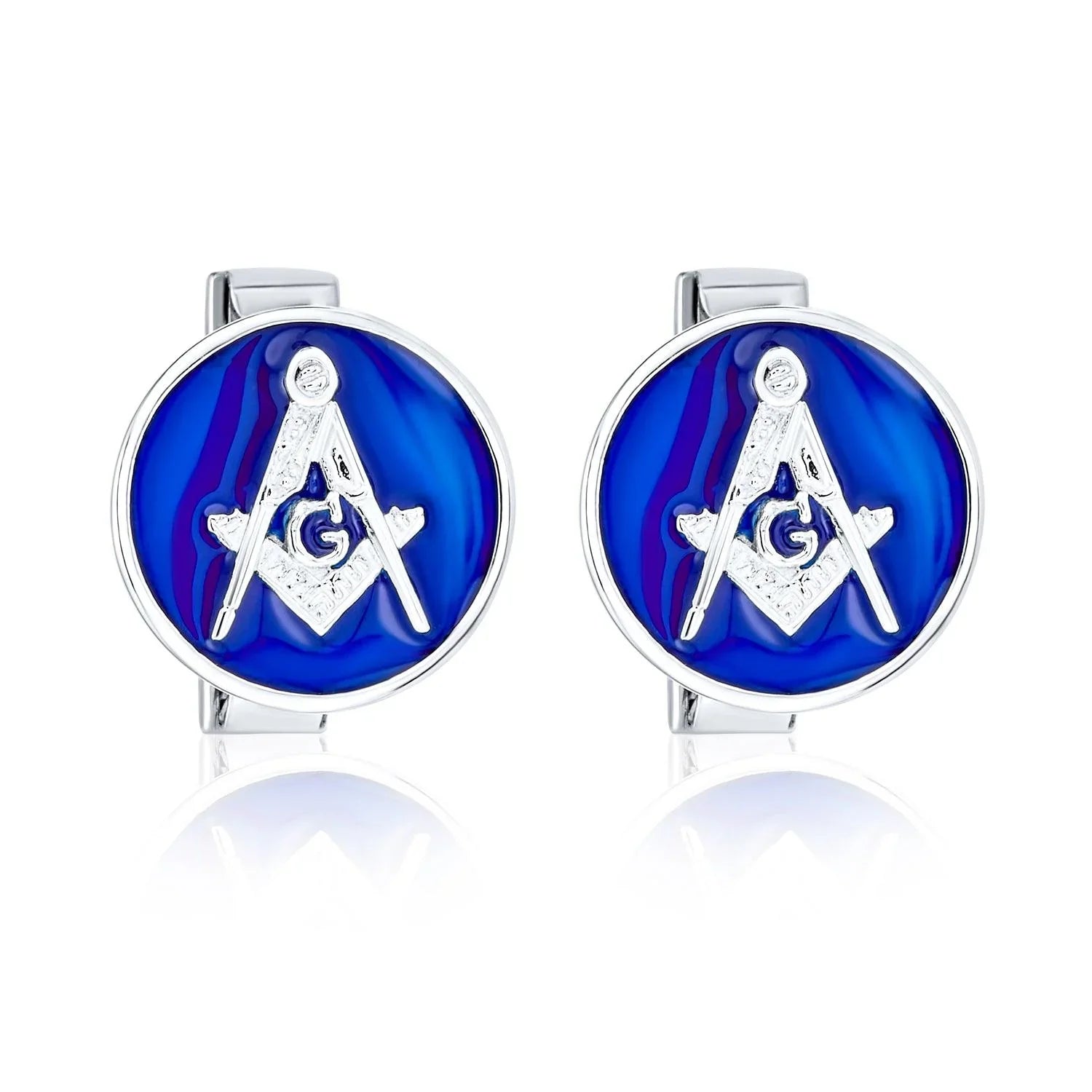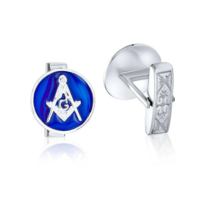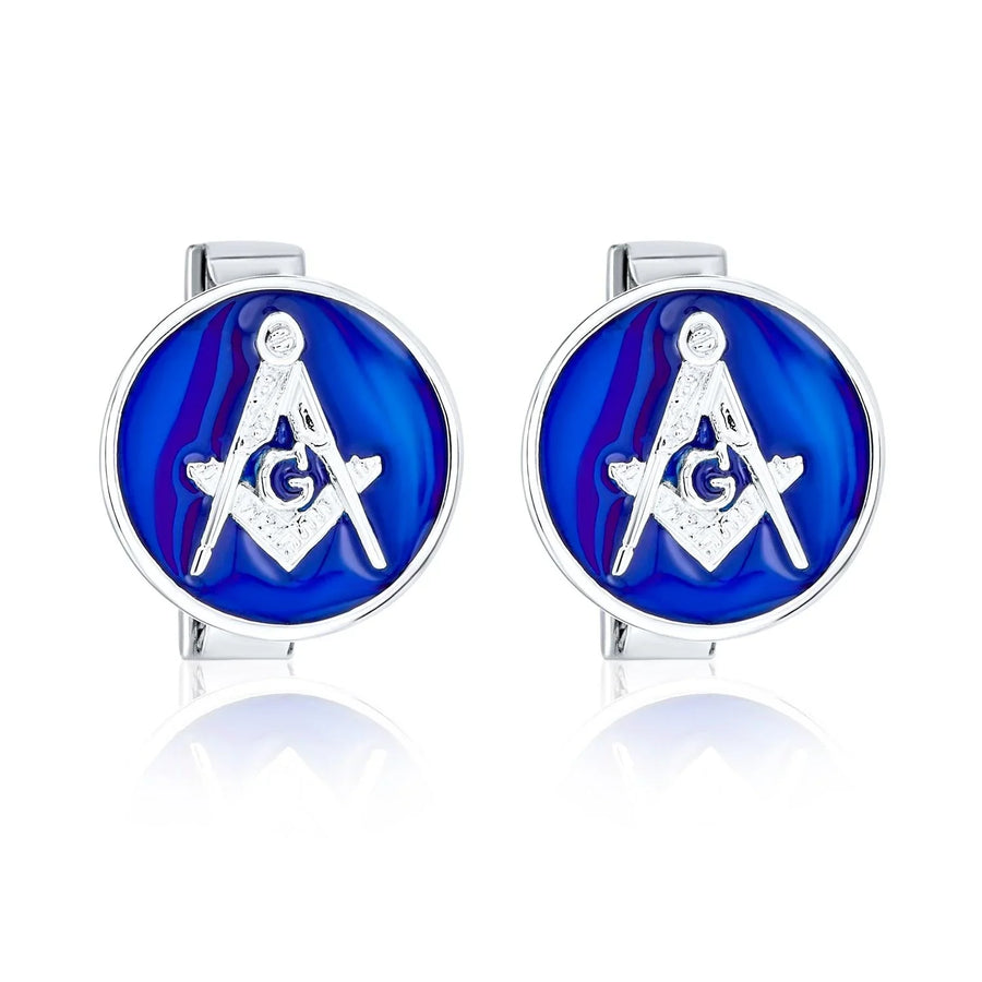 - These sleek sterling silver cufflinks are perfect for any proud freemason. Crafted with polished metal, they feature a filigree fastener design. The traditional compass, square, and letter G logo adorn a rich blue enamel background. Measuring 15mm wide, they weigh less than 10 grams, ensuring comfort. Ideal for personal use or as a gift for fellow masons. Perfect for birthdays or Father's Day, they exude a high society, secret society look.
