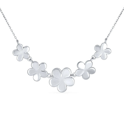 - Five opalescent flowers form the statement flower station necklace, changing color with the light. Hypoallergenic, lead-free, and nickel-free. Each piece is stamped .925, ensuring quality and craftsmanship.