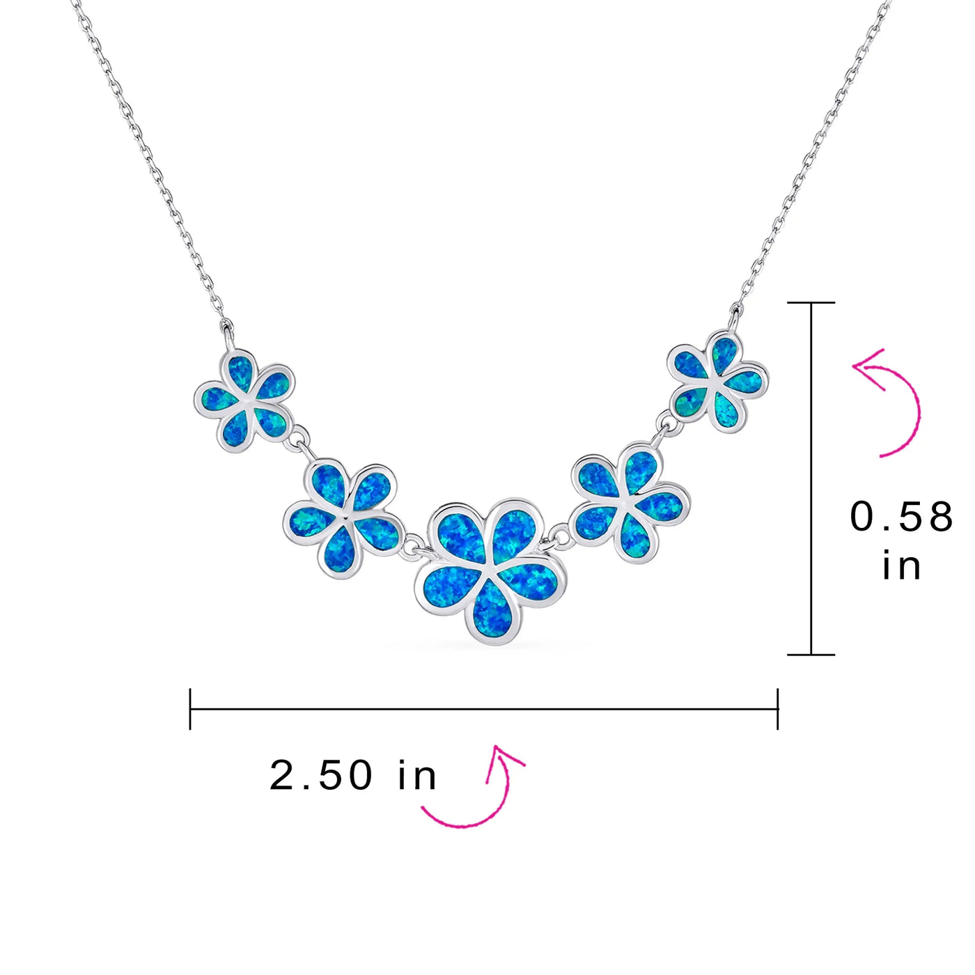 - Celebrate October birthdays in style with our Hawaiian Plumeria Flower Blue Opal Inlay Pendant. Perfect for starting the party. Surprise her with a .925 Sterling Silver flower pendant that guarantees a smile. Flower necklaces are our top sellers, and this one is stunning. The five-petal flowers feature created blue opal that changes color with light. Rhodium-plated sterling resists tarnish. Created Opal is a mystical gemstone, adding spirituality to this beautiful jewelry piece. Order today!