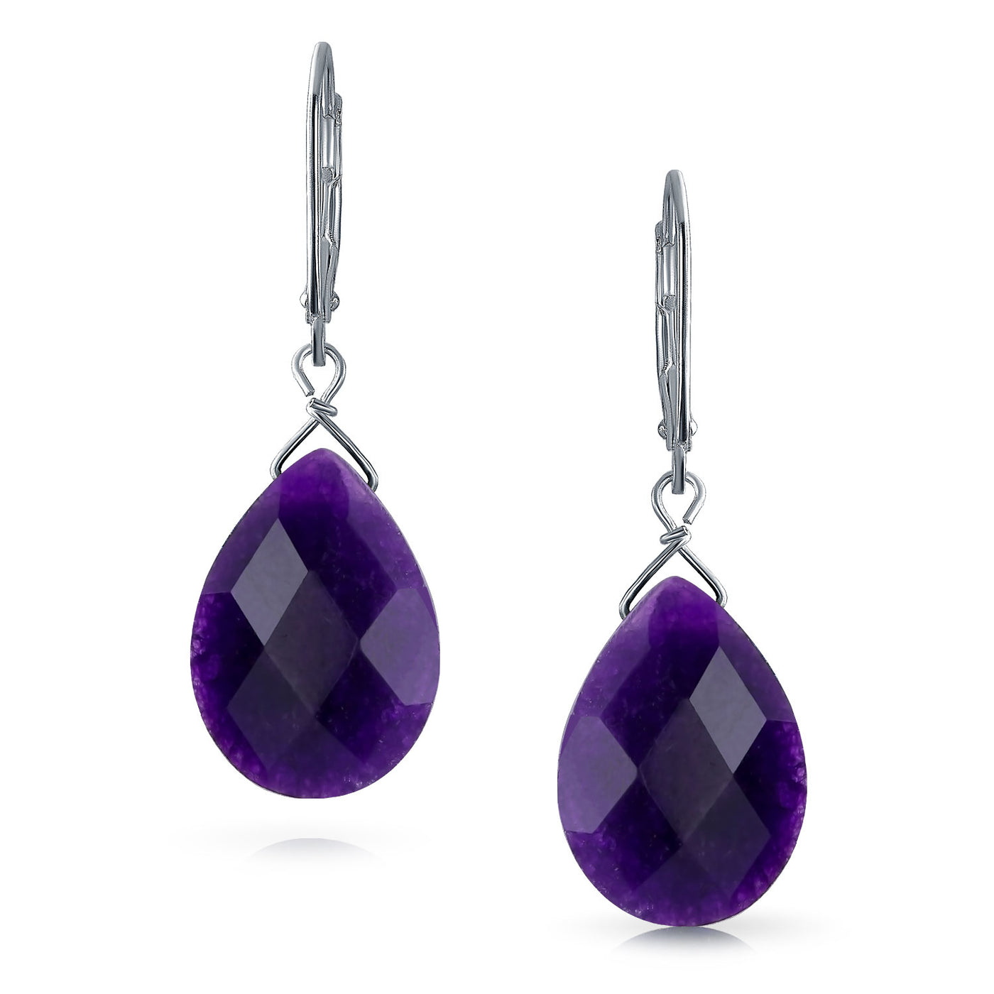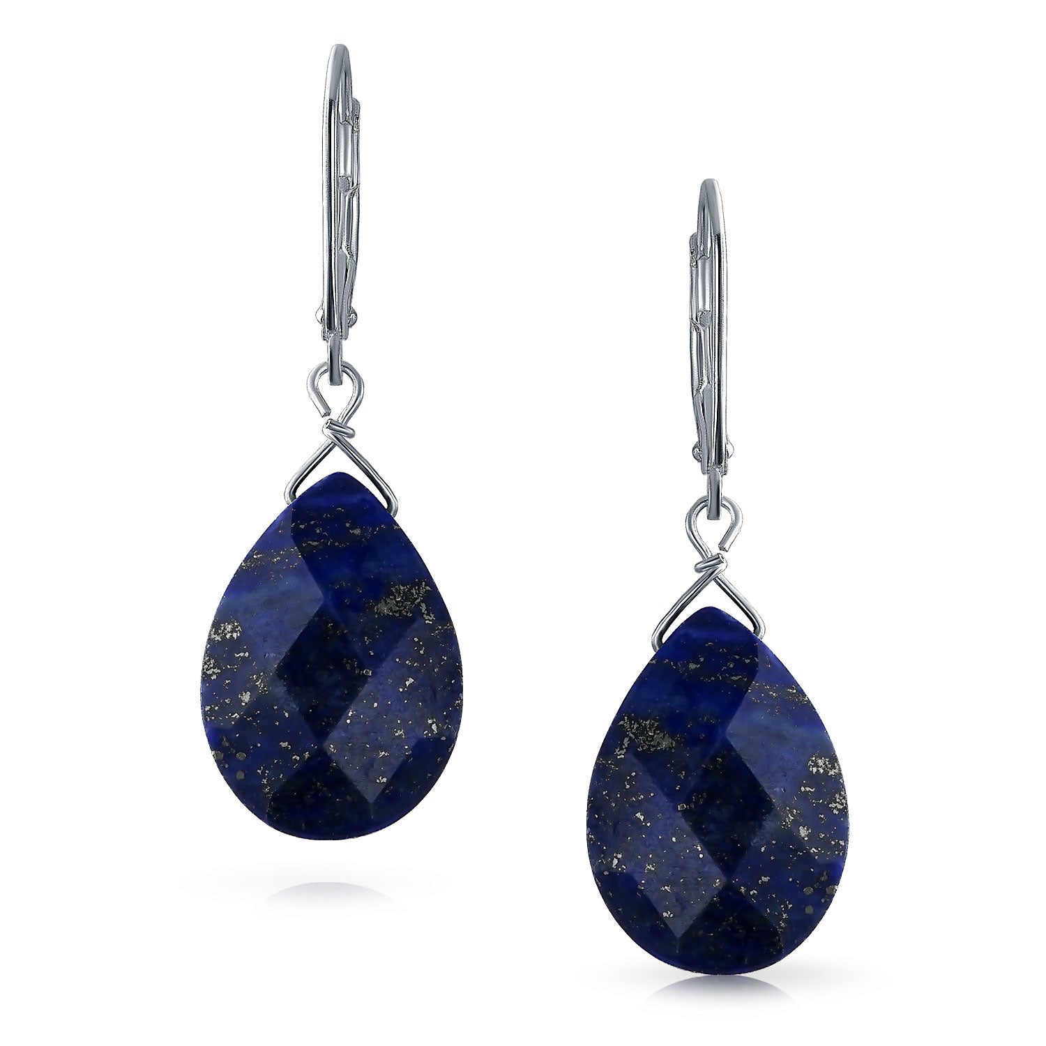 - Enhance your style with nature-inspired blue lapis dangle drop earrings. Crafted in .925 sterling silver, these purple pear cut earrings exude elegance. Perfect gift for December birthdays.