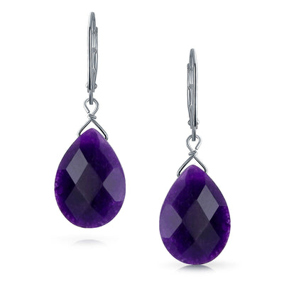- Dress to impress with these beautiful .925 silver and amethyst dangle earrings. Featuring an exquisite faceted pear shaped purple amethyst stone. Will stunningly elevate any ensemble and make a gorgeous February birthday option.
