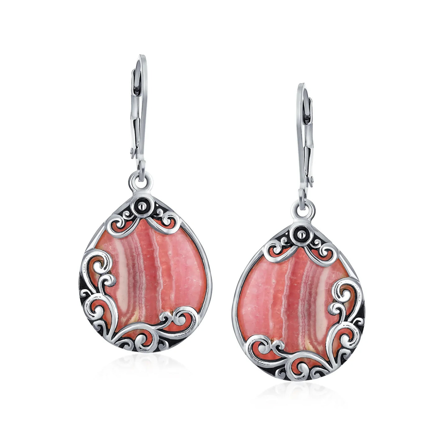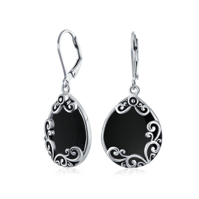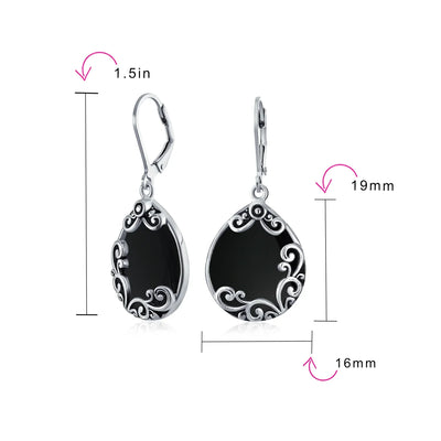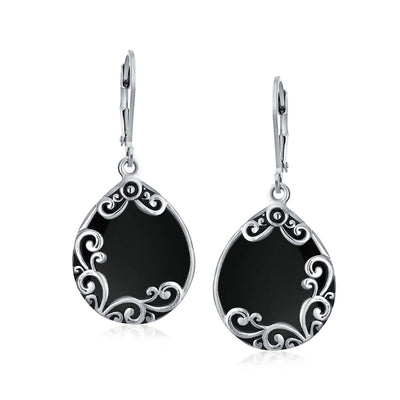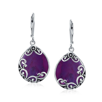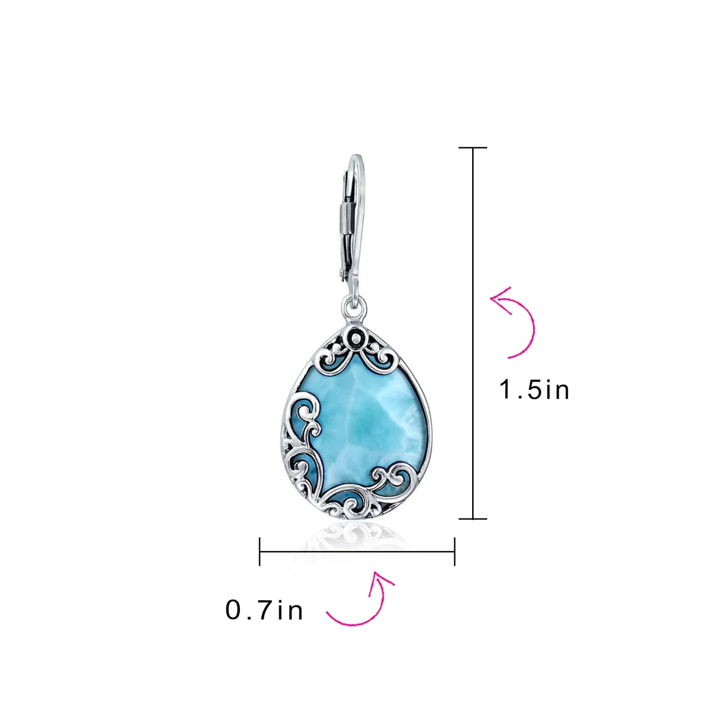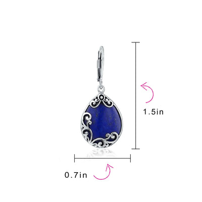 - These stunning Balinese sterling silver gemstone earrings feature chic silver vine detailing and blue teardrop stones. Natural stones add a vibrant pop of blue to these lever back earrings. They will soon become the MVP of your jewelry collection. Note: Color may vary due to natural stones.
